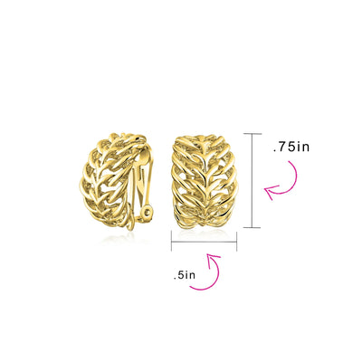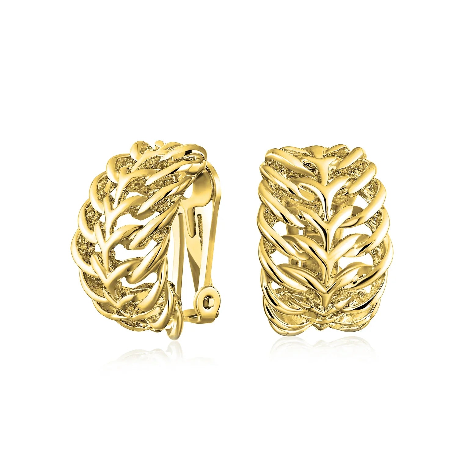 - Add sophisticated luster and style to your look with these beautifully designed, huggie hoop clip on earrings for non pierced ears. These chic earrings feature a mesmerizing, Celtic knot motif composed of gold plated brass, woven braids. Pair these Gold Plated brass beauties with your favorite jeans to shimmer during the day or pair them with a simple dress at night for a look of polished perfection.