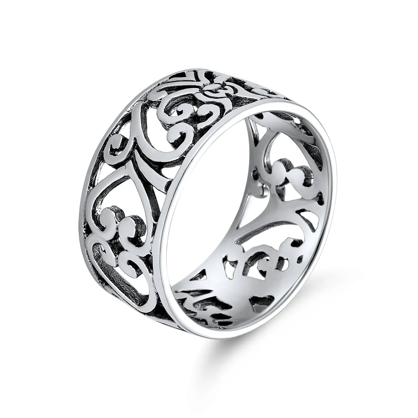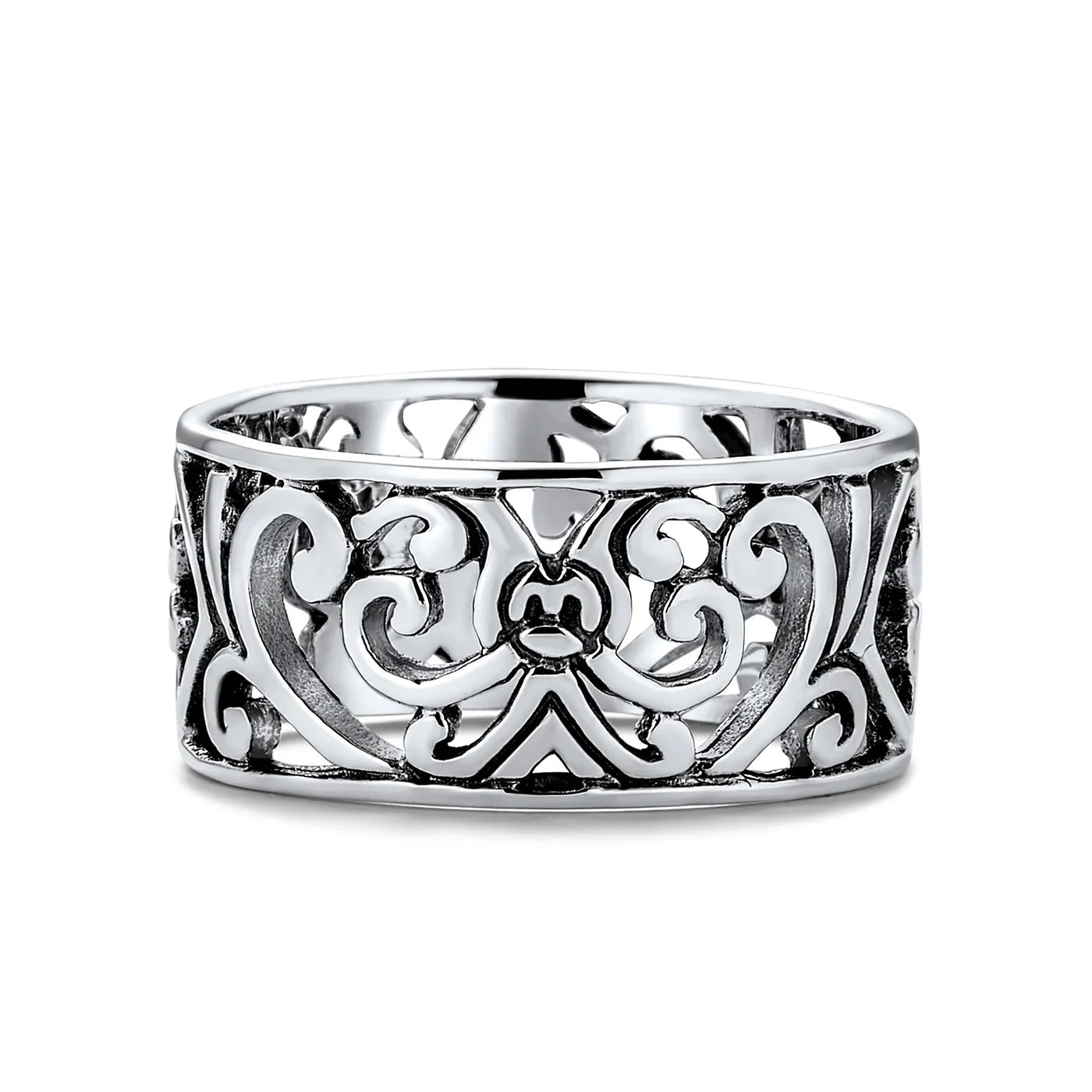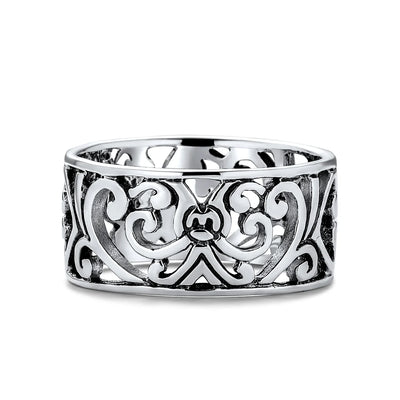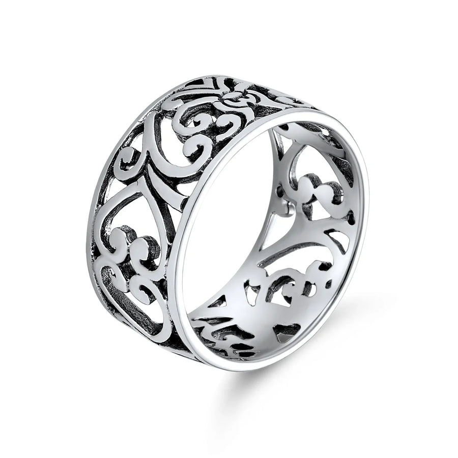 - Discover timeless elegance with this sterling silver filigree band. Intricate design throughout. Perfect gift for any occasion. Alluring and beautiful. Enjoy this .925 sterling silver ring for years.