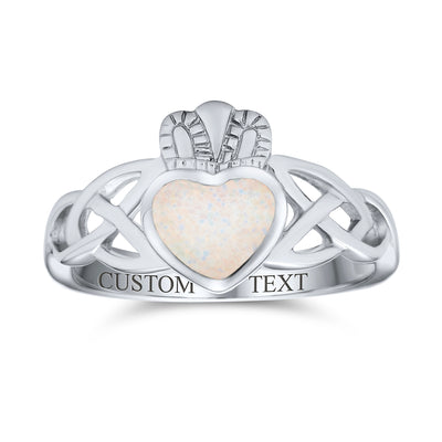 - Claddagh rings symbolize love, friendship, and loyalty. Sterling Silver Claddagh rings are cherished tokens in Irish culture, known globally for their Celtic jewelry appeal. Made of Sterling Silver and Created Opal, this stunning ring is perfect for October birthdays. Ideal for those who value love, friendship, and loyalty. This Claddagh Created Opal ring is perfect for everyday wear. Buy your Claddagh Created Opal Sterling Silver Celtic rings today and cherish them forever.