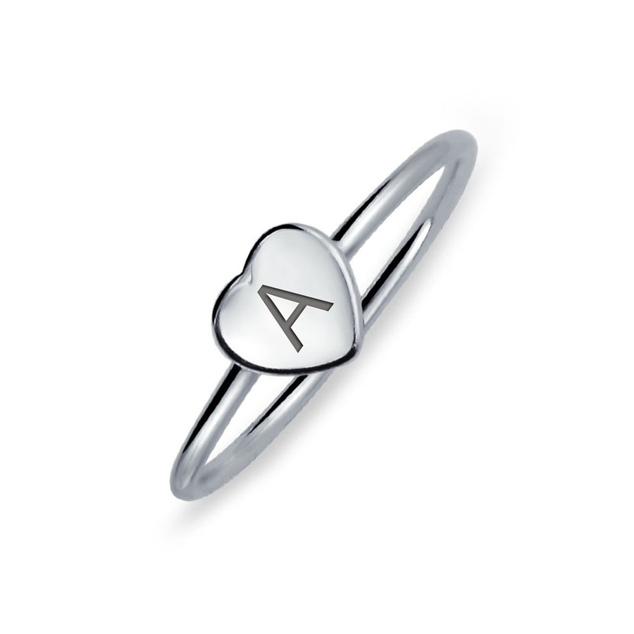 - initial Promise rings for her are an easy way to say I Love You and add a romantic touch to any look. This flat heart has a stamped letter in its sparkling sterling silver. This is a great fashion gift and a beautiful alphabet script or block addition to your jewelry box.