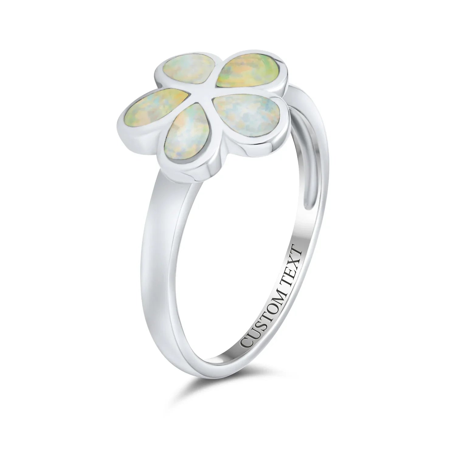 - Celebrate October birthdays effortlessly with our stunning .925 sterling silver flower ring. Perfect for jewelry lovers, it features iridescent colors that change with light. Rhodium plating prevents tarnish, ensuring long-lasting beauty. Flower rings are fun, memorable gifts. Surprise loved ones with an affordable Created opal ring this holiday season.