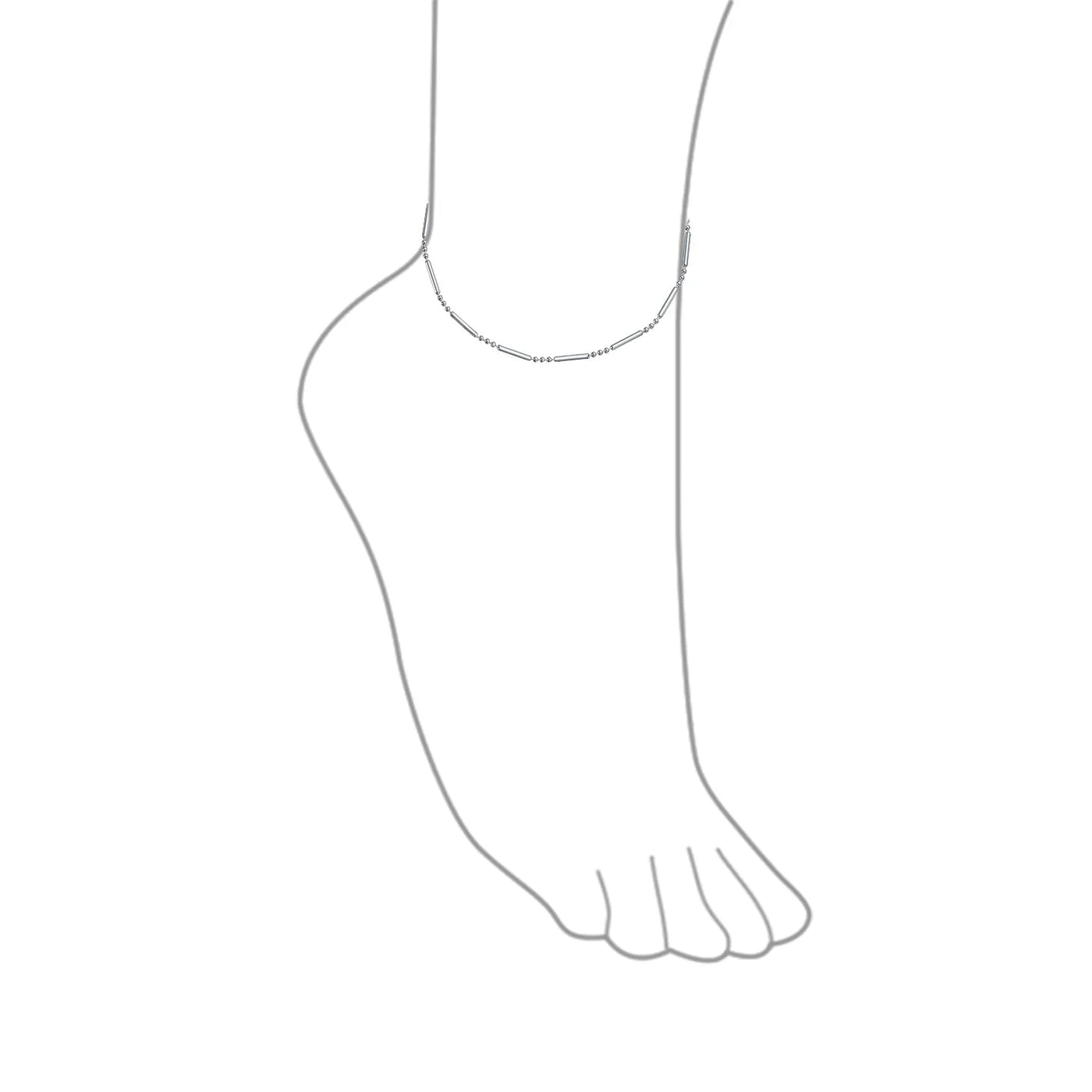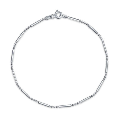 • Elevate your summer style with this stunning .925 silver anklet, featuring a sleek bar and ball chain design. Three round beads alternate with a modern bar style for a chic and contemporary look. Pair with other sterling silver jewelry to effortlessly enhance all of your favorite summer outfits.