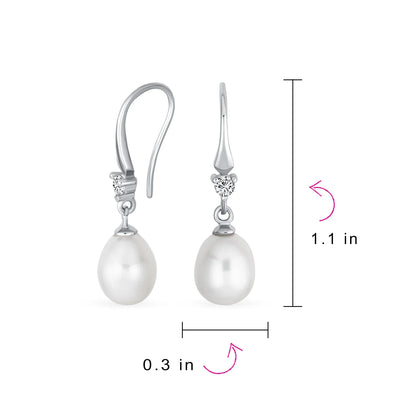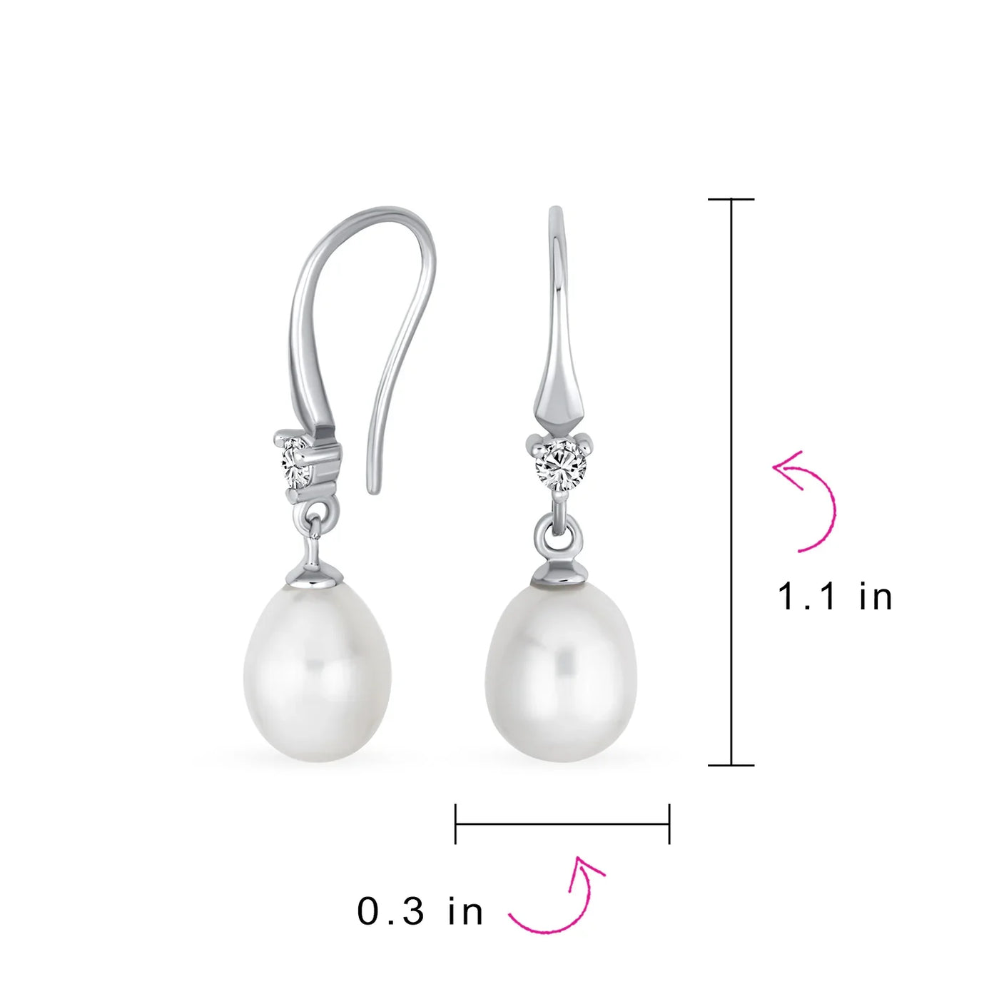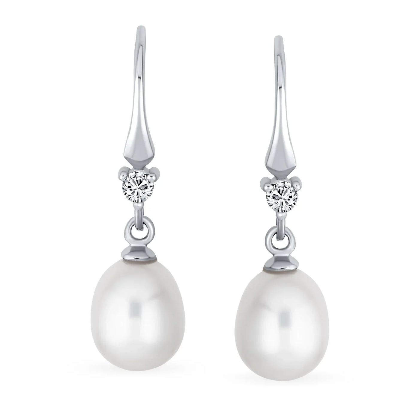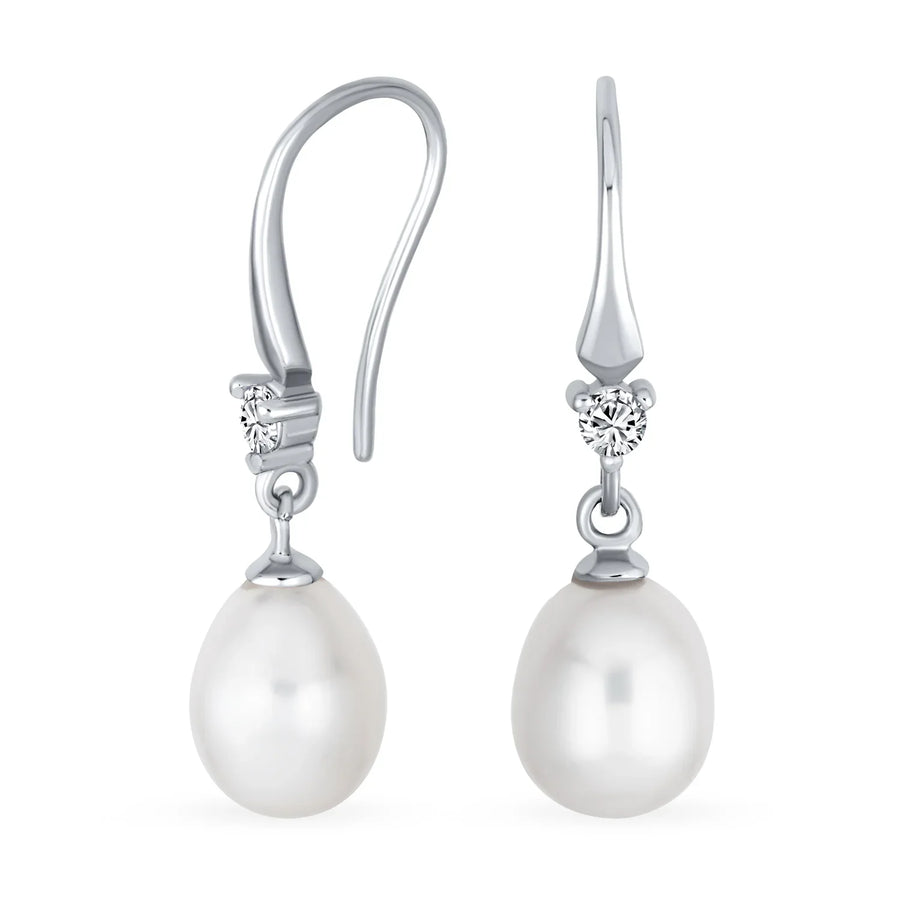 - Radiate as a blushing bride in these exquisitely lovely dangle earrings. Adorned with luscious white freshwater pearl drops, dangling elegantly from French wire .925 silver, they are perfect for your wedding day and any special occasion, including June birthdays.