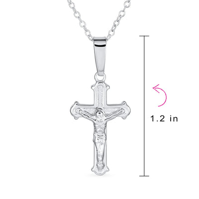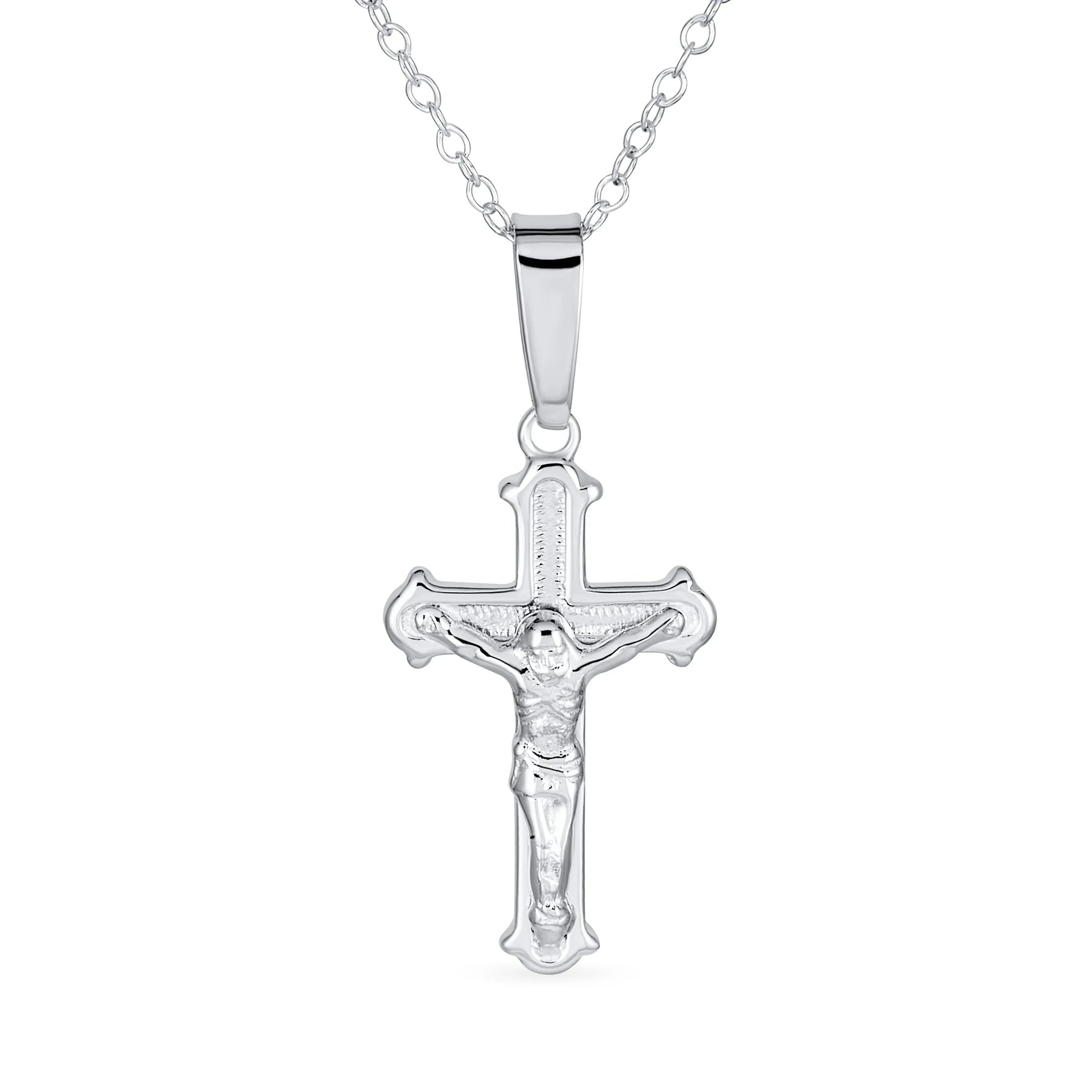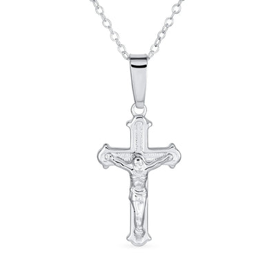 - Searching for the ideal gift this season? Discover our stunning Crucifix pendant necklace. This religious jewelry piece features an intricate yet simple design. Crafted from .925 Sterling Silver, it's perfect for men and women of all ages. Its comfortable size and weight make it easy to wear. Pair it with other pendants or chains for a stylish, layered look. Ideal for Easter or any occasion, this affordable necklace will be cherished. Don't wait, order now and make someone's day extra special.