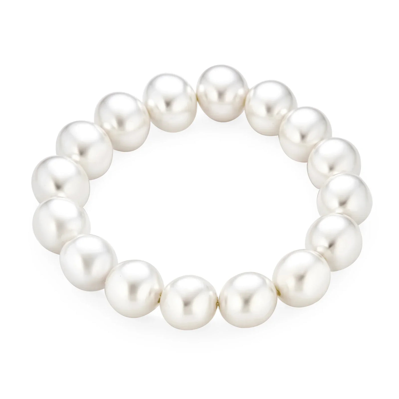• Elevate your wedding ensemble with a touch of timeless elegance by opting for this exquisite stretch bracelet. Crafted with a strand of 12mm white, simulated pearls, it exudes a classically beautiful and traditionally feminine style. Perfect for adorning your bridal party or gifting on Mothers Day, this bracelet is a stunning choice that will leave a lasting impression.