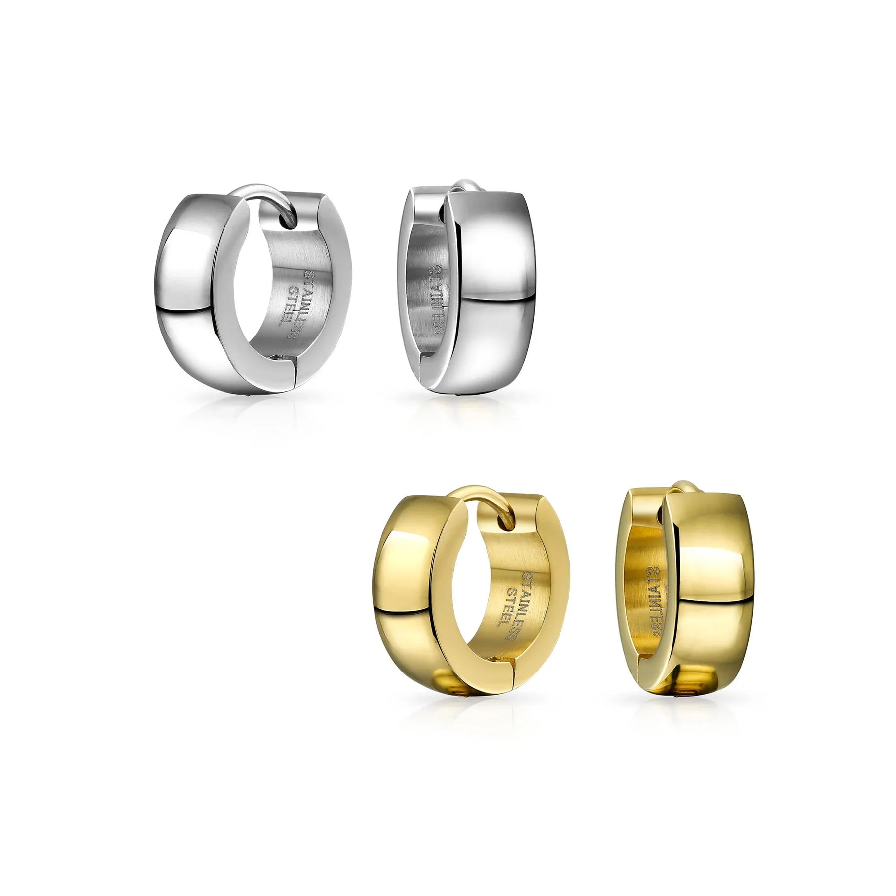 - Add a touch of silver or gold to your evening with our silver or gold-colored stainless steel huggie hoop earrings. Watch the night glow. Rugged yet elegant, these glamorous huggie hoops add individuality to your look. Durable, comfortable, and dependable stainless steel. Their golden beauty melts hearts. Perfect gifts for adventurous souls.