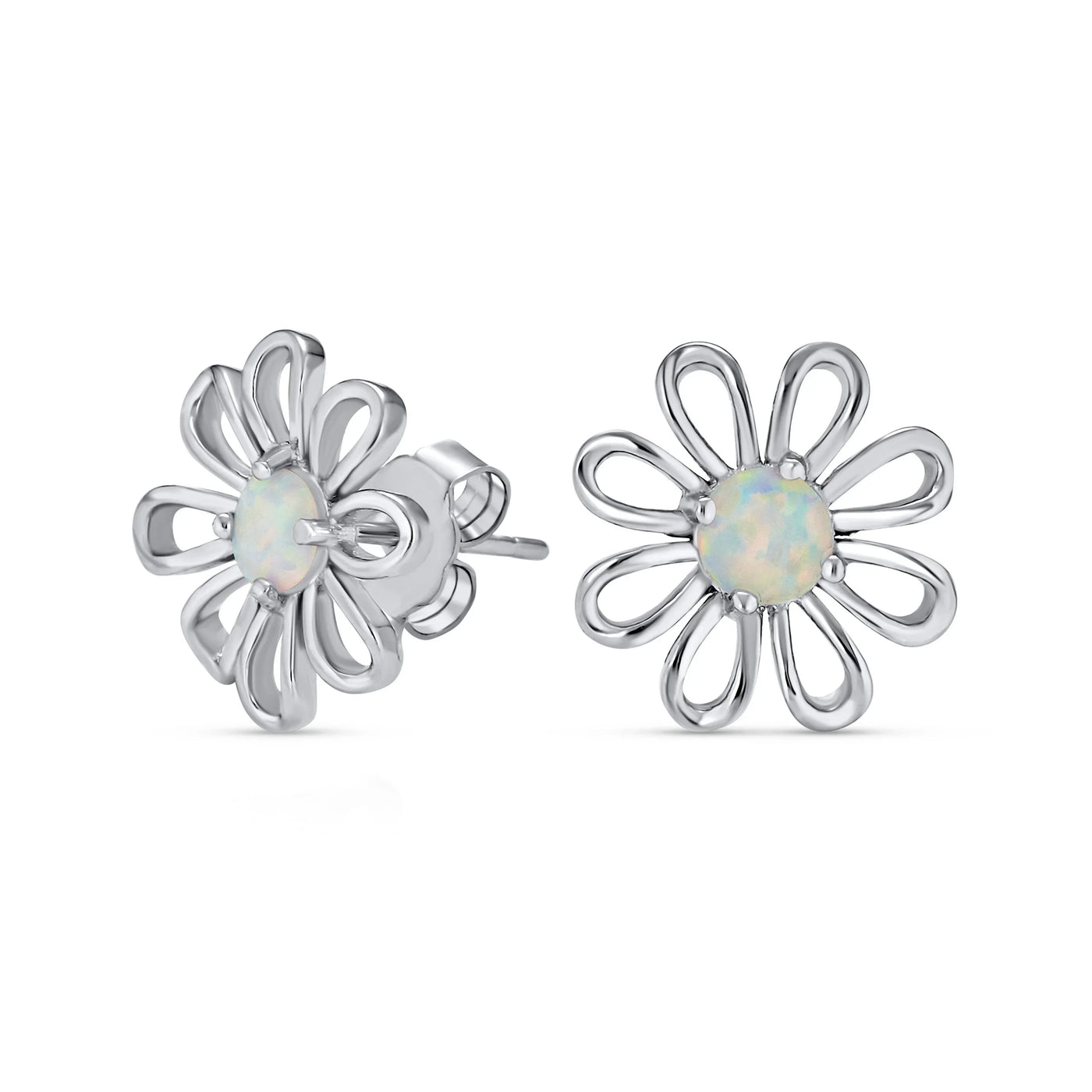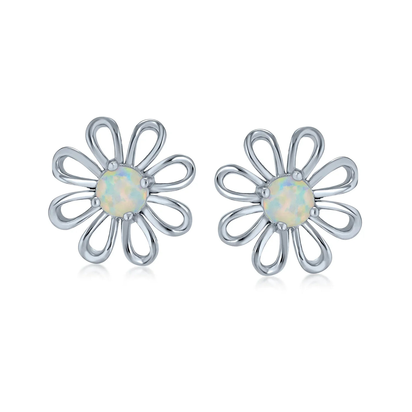 - BEAUTIFUL DESIGN - Springtime loveliness is yours with these sweet, 925 silver stud earrings. Highlighted by a charming daisy flower motif with filigree silver petals and a glowing created opal center. So chic for an October birthday gift.
