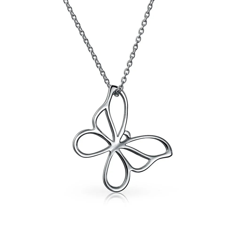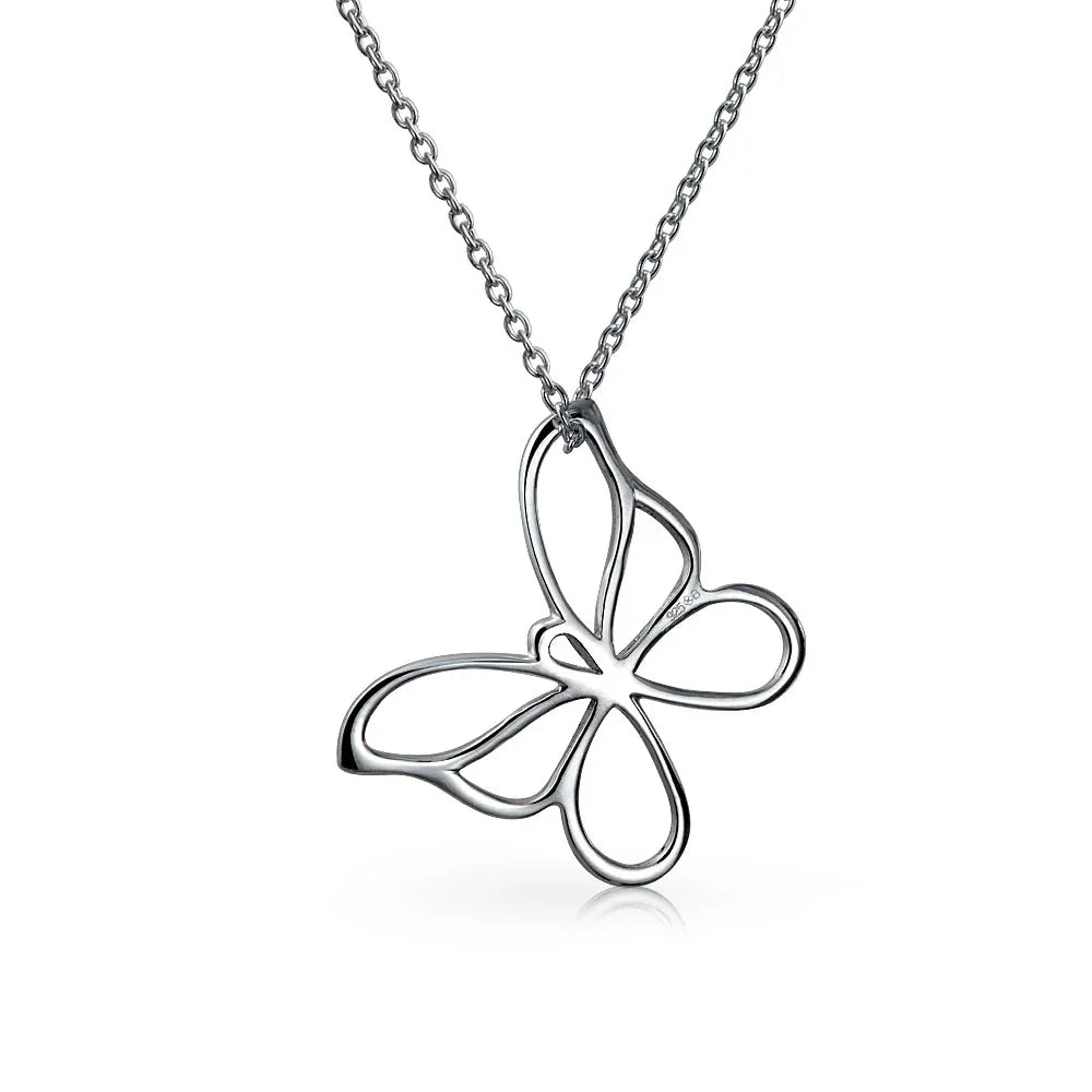 - Transform your jewelry box with this stunning sterling silver butterfly necklace. The open sideways design adds a unique touch, while the garden charm symbolizes transformation. Perfect for gifting to someone special.