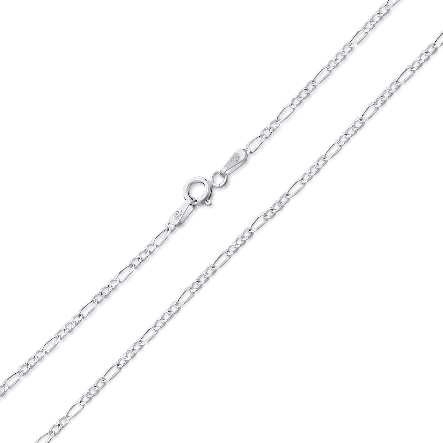 - Classic and timeless, this Italian Figaro chain is the perfect accessory for men and women alike. Crafted from solid .925 sterling silver, it features a sleek 1.5MM width and a secure spring ring clasp for durability. Ideal for layering or pairing with small to medium-sized pendants, this 24-inch chain offers a lightweight feel and versatile style for everyday wear or special occasions. Add a touch of elegance to any outfit with this must-have jewelry piece.