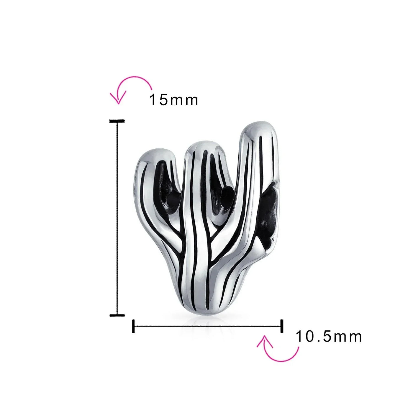 - Express your love for nature with this Sterling Silver Cactus bead charm. Perfect for Southwestern jewelry enthusiasts. Ideal for silver bead charm bracelets. Compatible with various bead bracelets. A thoughtful gift for friends or family.