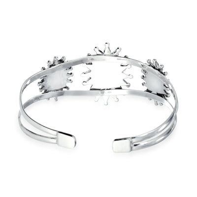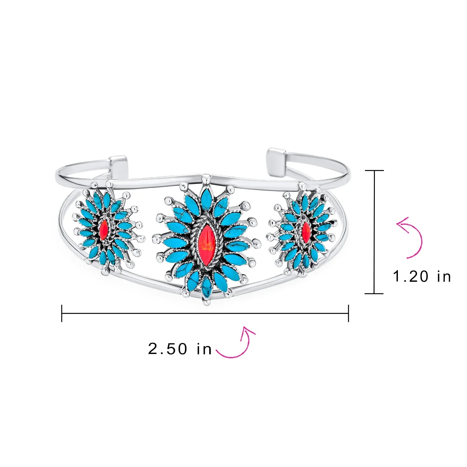 - Add vivid beauty to your look with this southwest style, fine .925 sterling silver Concho cuff bracelet. Featuring a turquoise and coral to make this triple blossom design