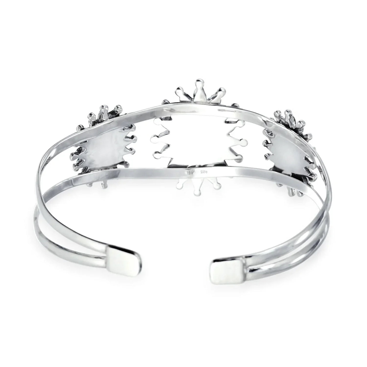 - Timeless Cluster Native American Jewelry- Zuni Needlepoint Jewelry Flower Blossom Sunburst design centerpiece of the 3 cluster flowers mounted on shank work open cuff for comfort wear. The Zuni tribe is known for mastering this style of art. Spanish conquistadors brought the symbol to the Navajo, who adopted it many of there designs.