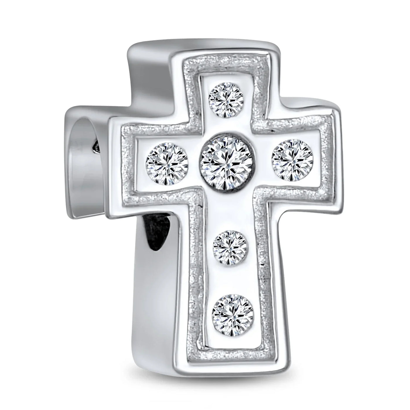 - This stunning .925 sterling silver cross bead features glittering cubic zirconia accents. Perfect for adding sparkle to your bracelet. Affordable and inspirational, these cz cross charms showcase your spirituality with style. Ideal as religious jewelry, Christmas gifts, or holiday presents.