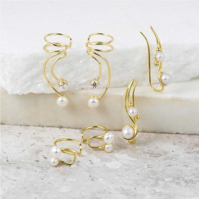 - A classic look with trendsetting dazzle, our CZ freshwater cultured pearl ear cuff adds fun bling. Perfect for nights out or daytime looks, our gold plated ear cuff jewelry shines with slicked back hair and bold lips. Wear June birthstone ear wraps for stylish weddings.