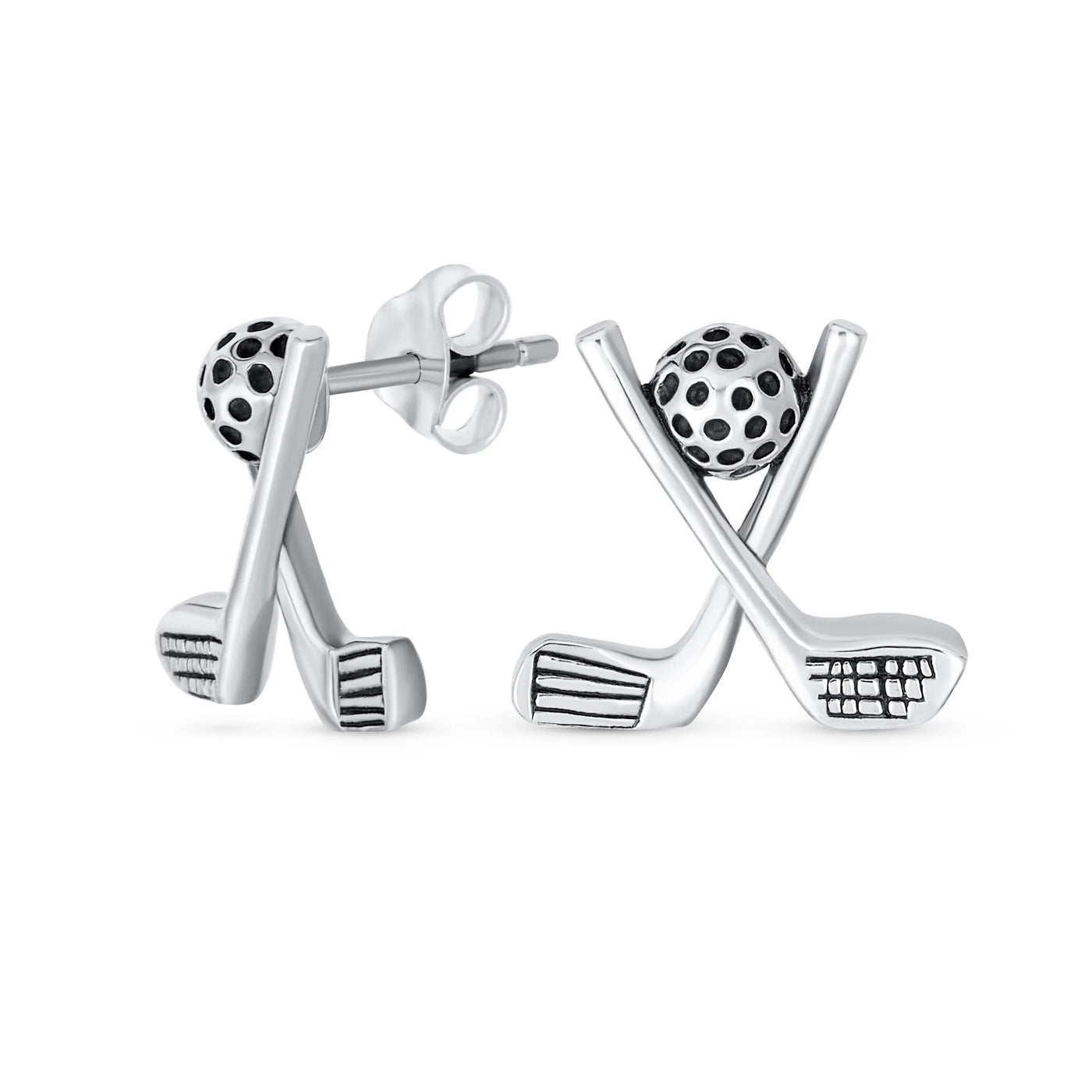 Golfer Gift Sport Athlete Stud Earrings Oxidized Sterling Silver for Golfers - Bling Jewelry