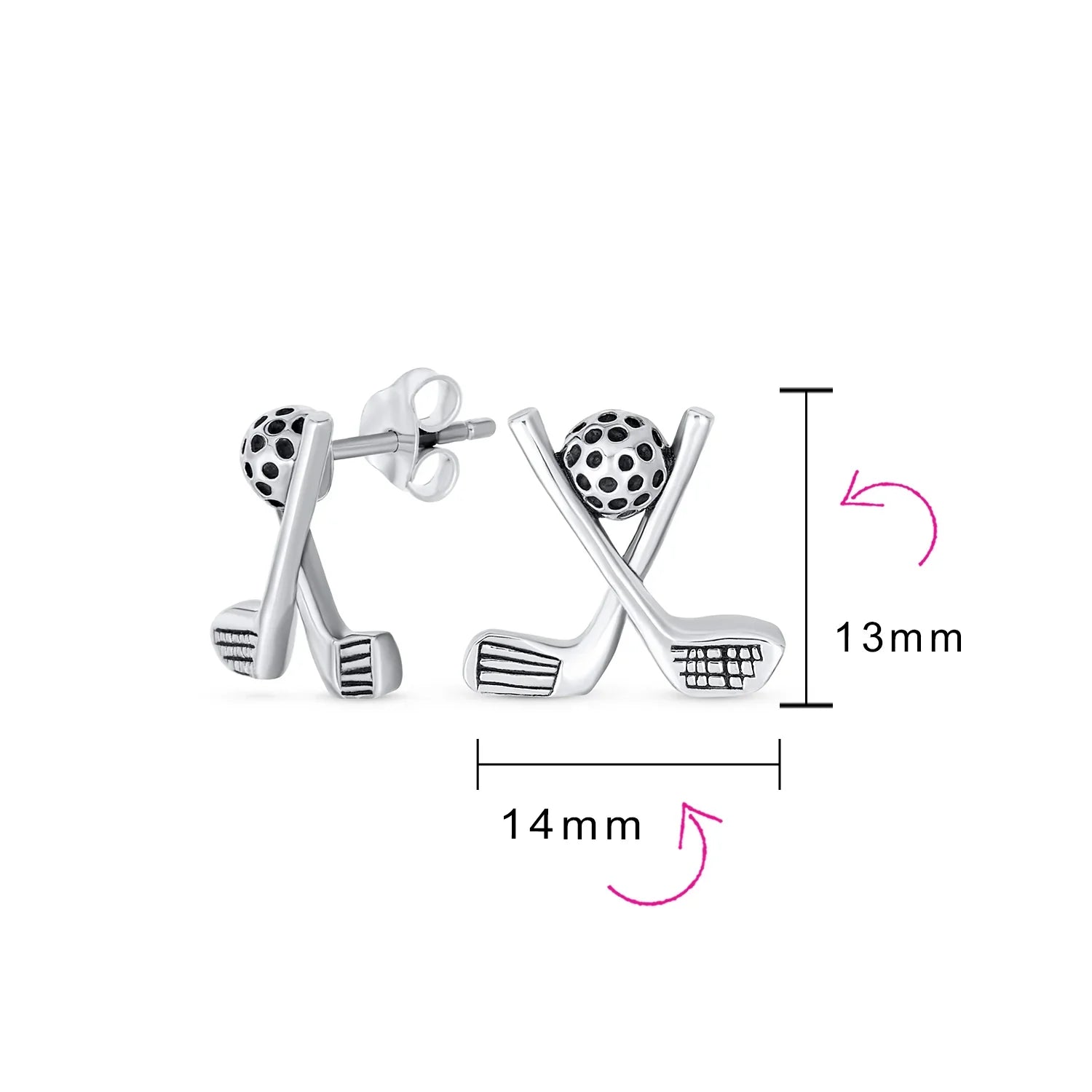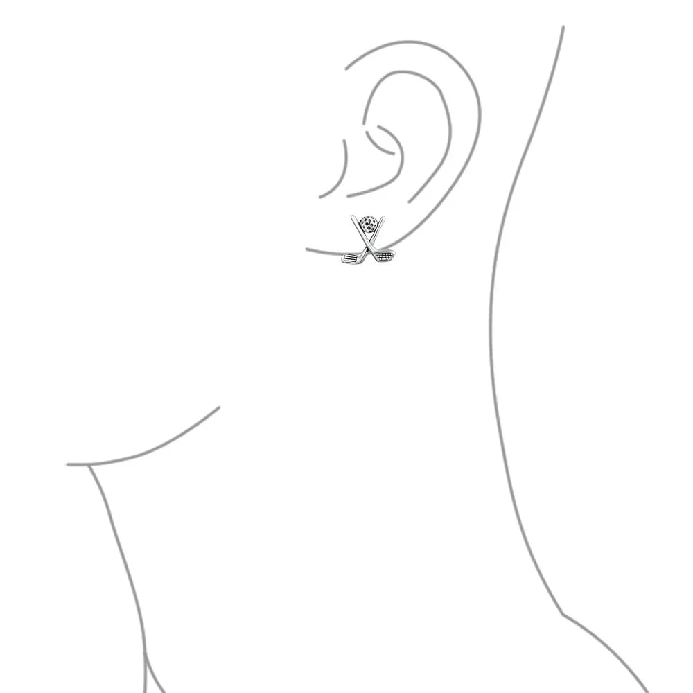 • Tee it high and let it fly with these whimsical sterling silver golf stud earrings, featuring a ball and crossed club design—perfect for pierced ears and anyone passionate about the sport.