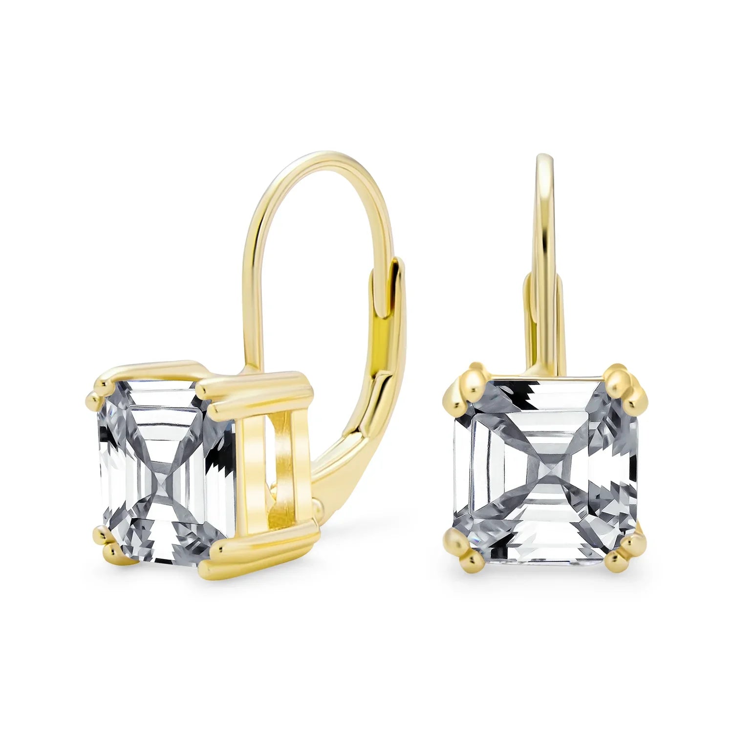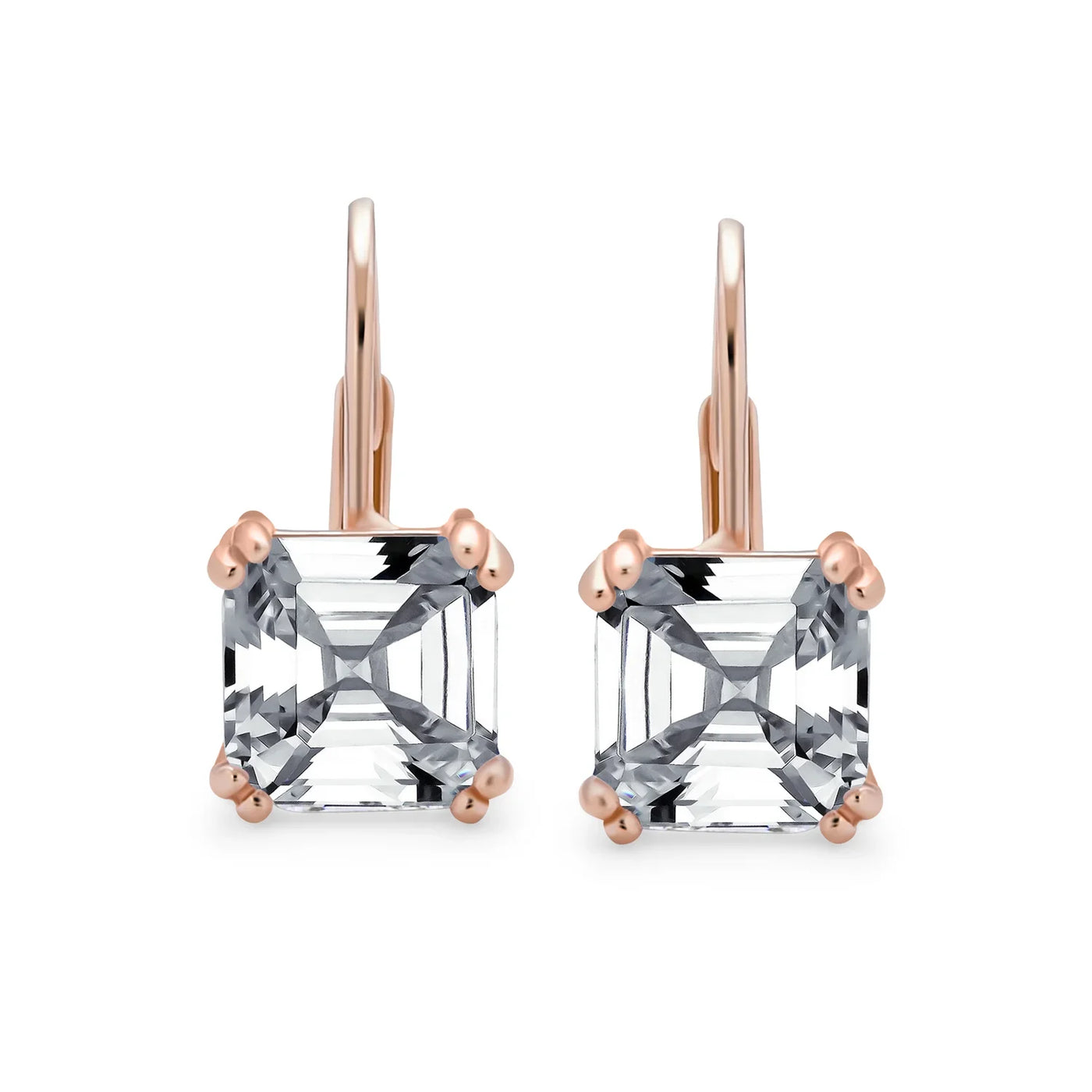 - Stand out with these entrancing, rose gold plated silver lever back earrings. Featuring a 7mm Asscher cut square CZ, they add dazzle to any occasion. Perfect for everyday wear or special nights out.