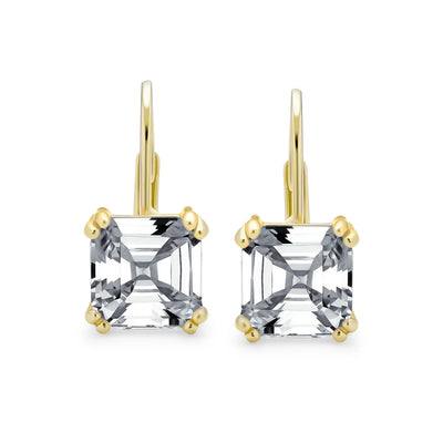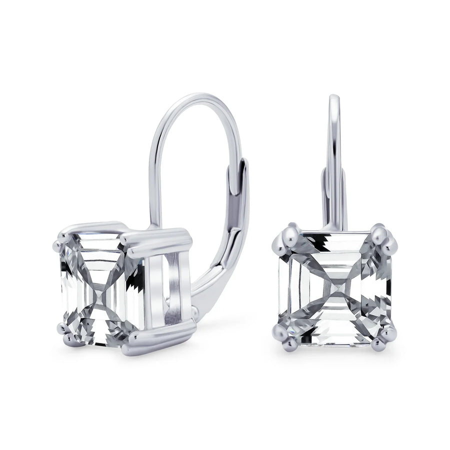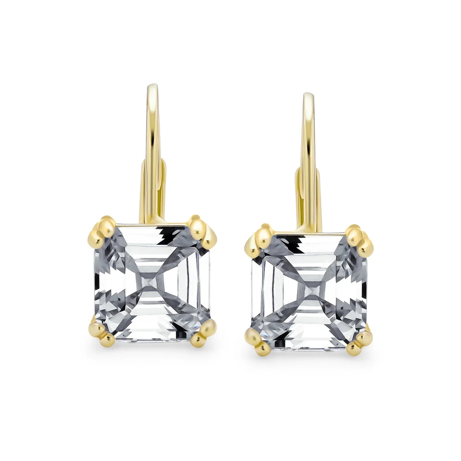 - Asscher Cut diamonds feature an octagonal, square shape with layered facets that enhance luster and clarity, creating a "hall of mirrors" sparkle. Elevate your wedding or evening style with these elegant drop leverback earrings, stud earrings, or station pendant that stay perfectly in place.