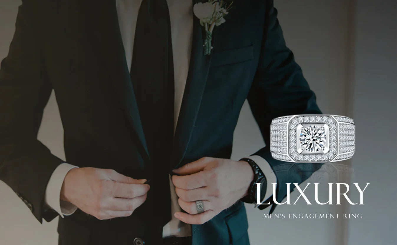 - STUNNING DESIGN - Show your favorite man how much you care with this distinguished men's engagement ring or hip hop signet cocktail ring. Featuring a handsome design with a princess cut square 2.5 CTCZ center stone, enhanced halo, and matte ridge band with side CZ accents.
