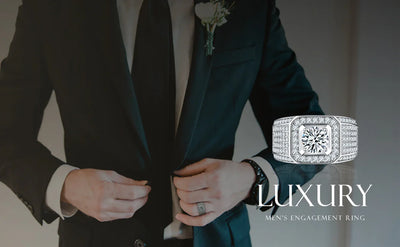 - Elevate your engagement with this exceptional men's ring that combines classic masculinity with contemporary glamour. Crafted with a stunning square cubic zirconia center stone and channel-set pave cubic zirconia accents, this ring is a unique and stylish choice for the man who has captured your heart. Make a statement with this modern design that exudes sophistication and elegance.