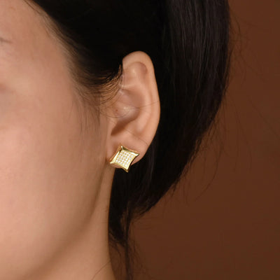 Square Shaped Micro Pave CZ Kite Stud Earrings Gold Plated Sterling Silver 5MM