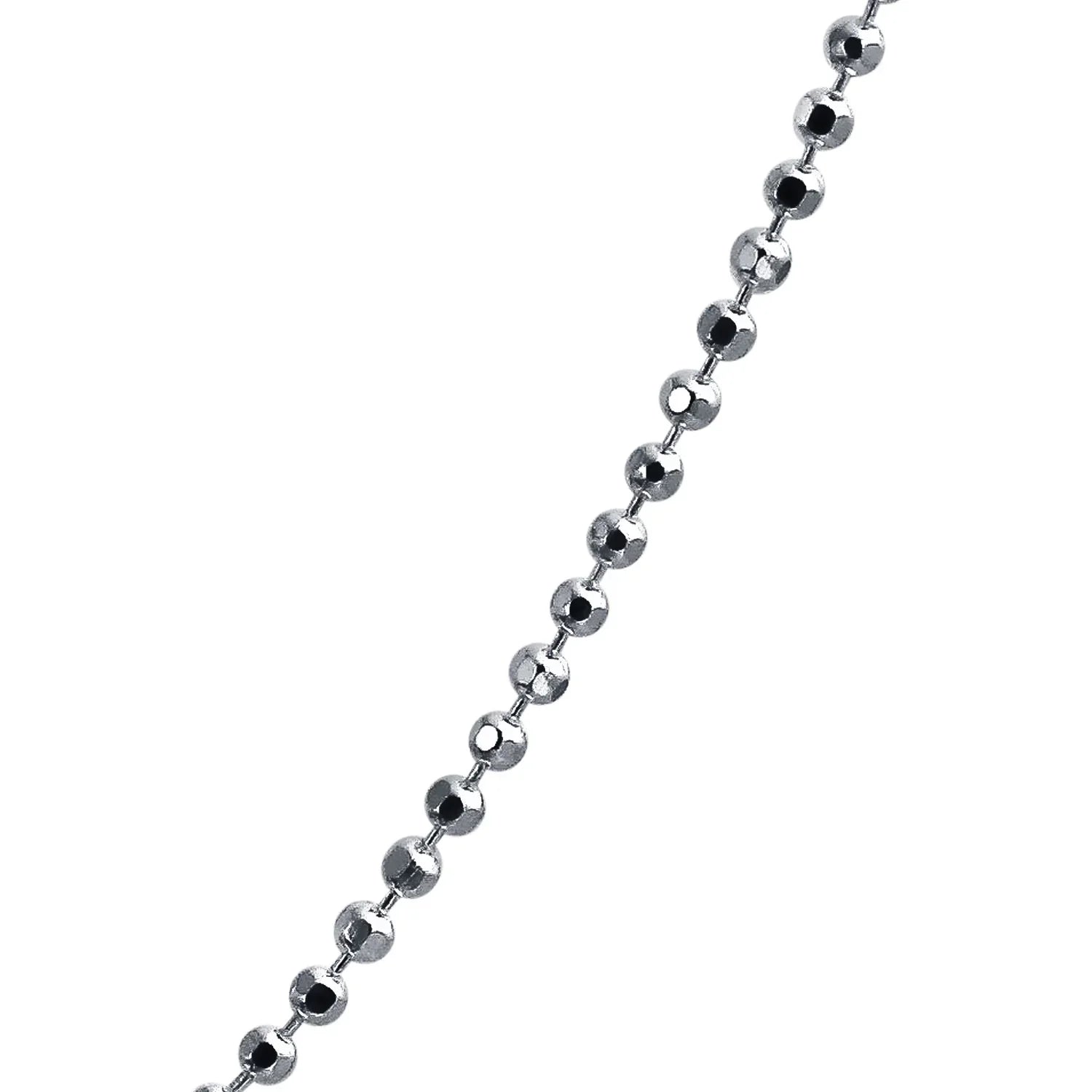 • This Unisex .925 Sterling Silver Bead Chain is exquisite. It blends fashion and function seamlessly. The versatility of this silver bead necklace is unparalleled. Wear this delicate .925 Sterling Silver bead chain necklace daily or elevate it with a pendant for special occasions. Each tiny silver bead on this necklace has multiple cuts, catching light uniquely and dazzlingly. This 150 gauge bead chain necklace is affordable, making it a sensational holiday gift for loved ones. Order your .925 Sterling Silver diamond cut bead chain necklace today.