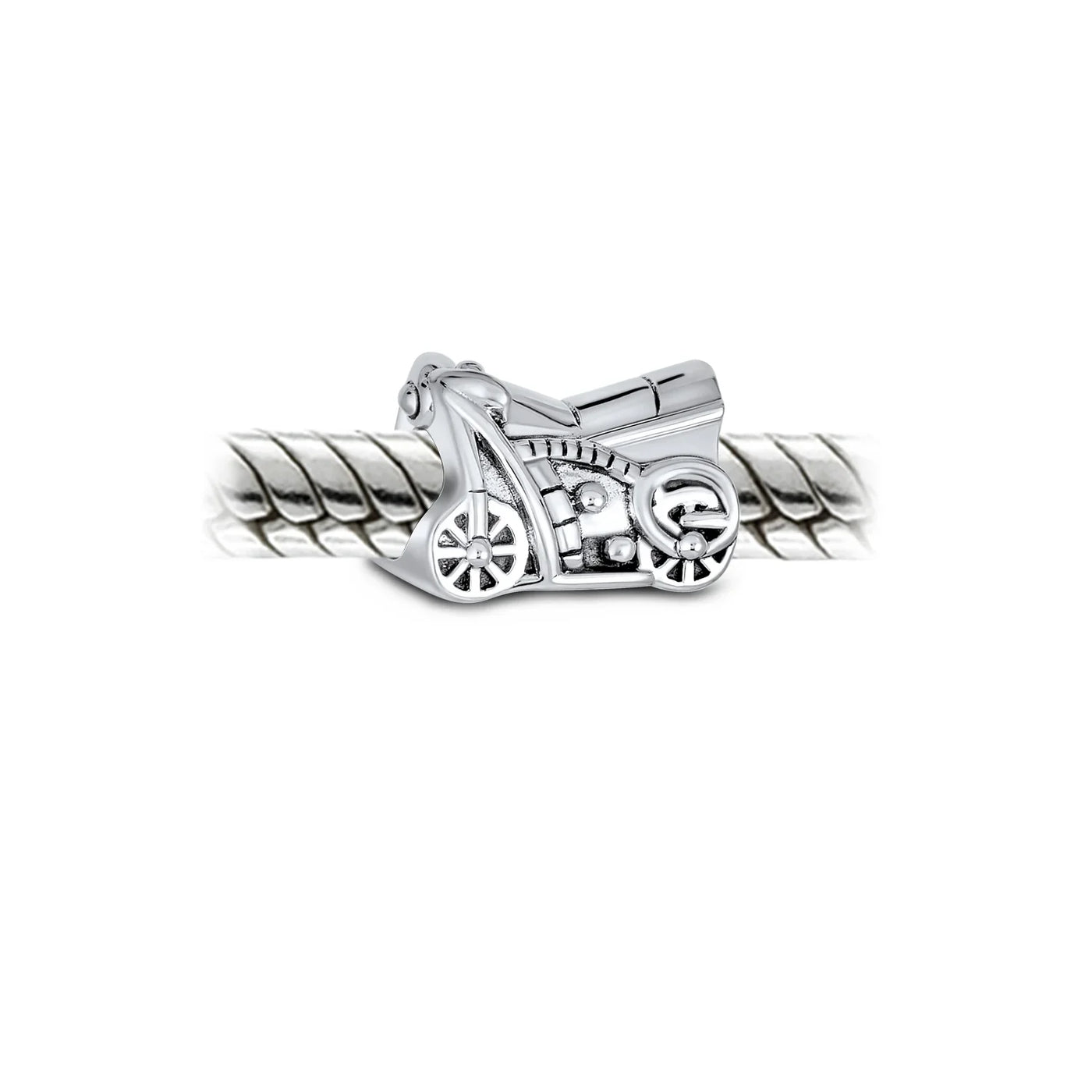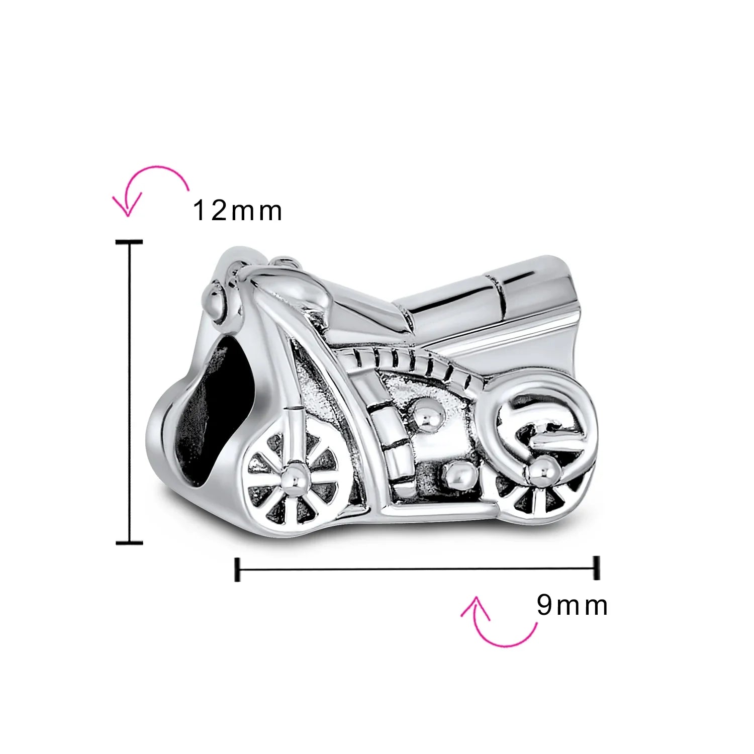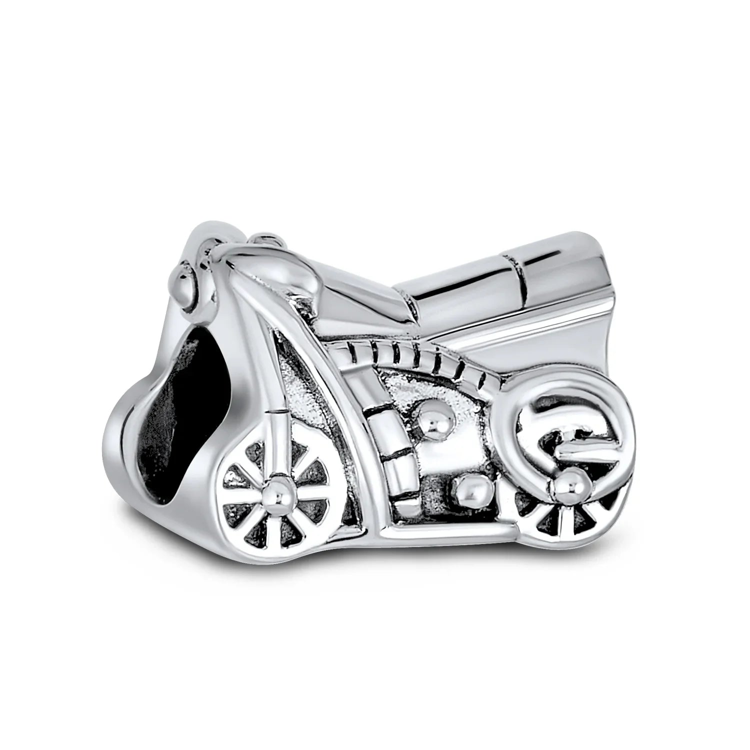 - Feel the wind with this .925 Sterling Silver motorcycle bead. Perfect for motorcycle enthusiasts and charm bracelet lovers. Intricate details include wheels, handlebars, and headlight. Add passion to your bracelet with this unique charm. Buy now and embrace the freedom of the open road.