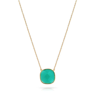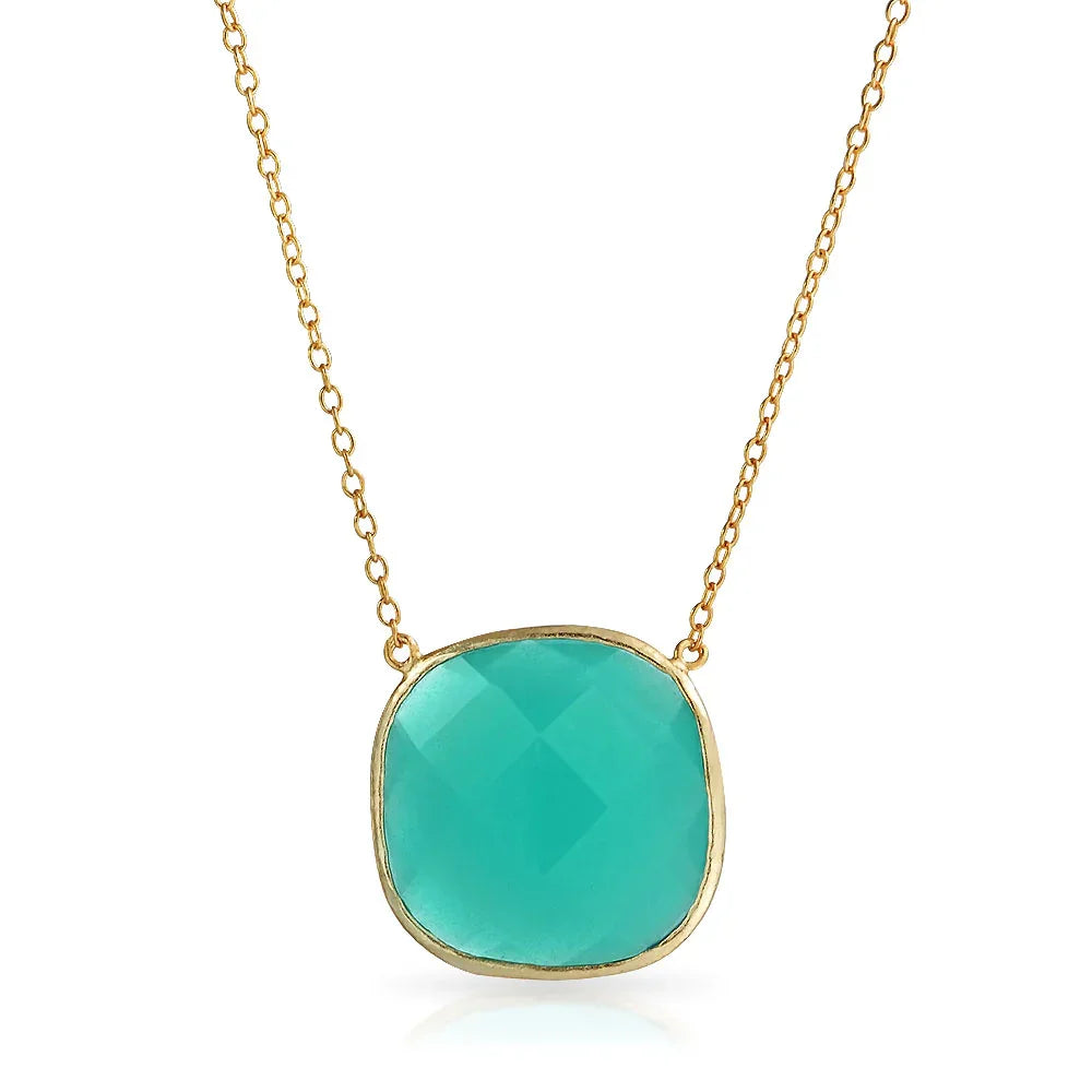 - STUNNING DESIGN - Make a statement at your next event with this exquisite pendant necklace. Featuring a captivating simulated chalcedony in an irregular shape, reminiscent of beautiful sea glass. The pendant is elegantly stationed in a teal color, adding a touch of uniqueness to the overall design.