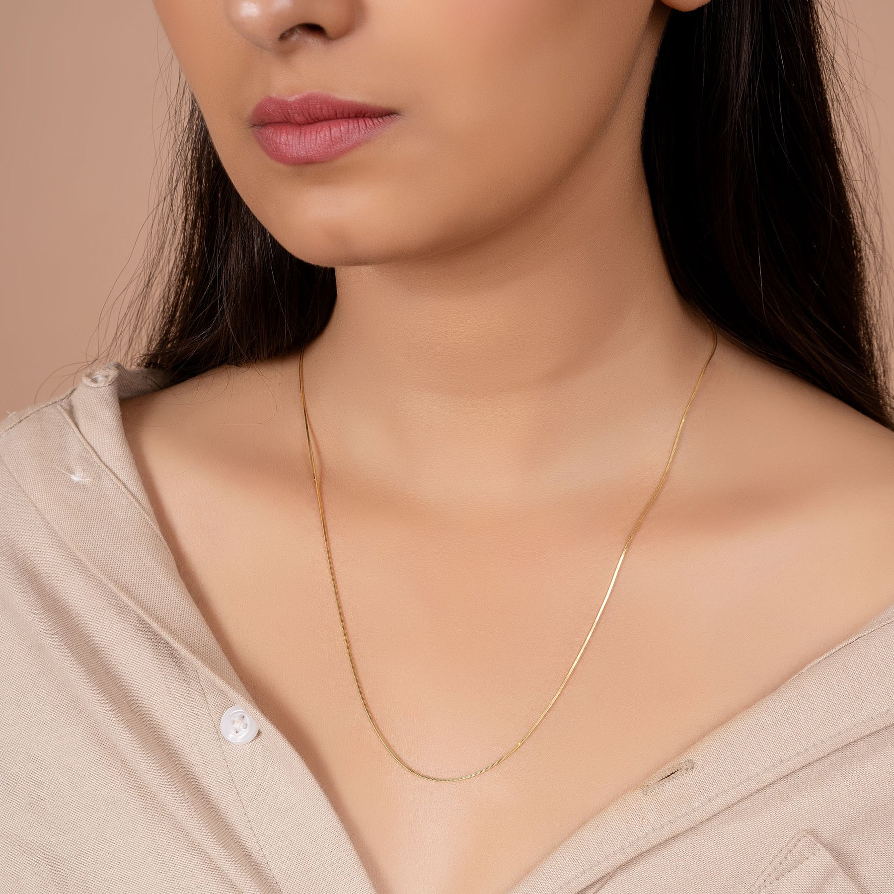- Experience the elegance of our smooth chain, elevated by superior snake chain technology. Boasting a rich and perfect shine, this chain offers a sleek, modern appearance, making it ideal for everyday casual wear.