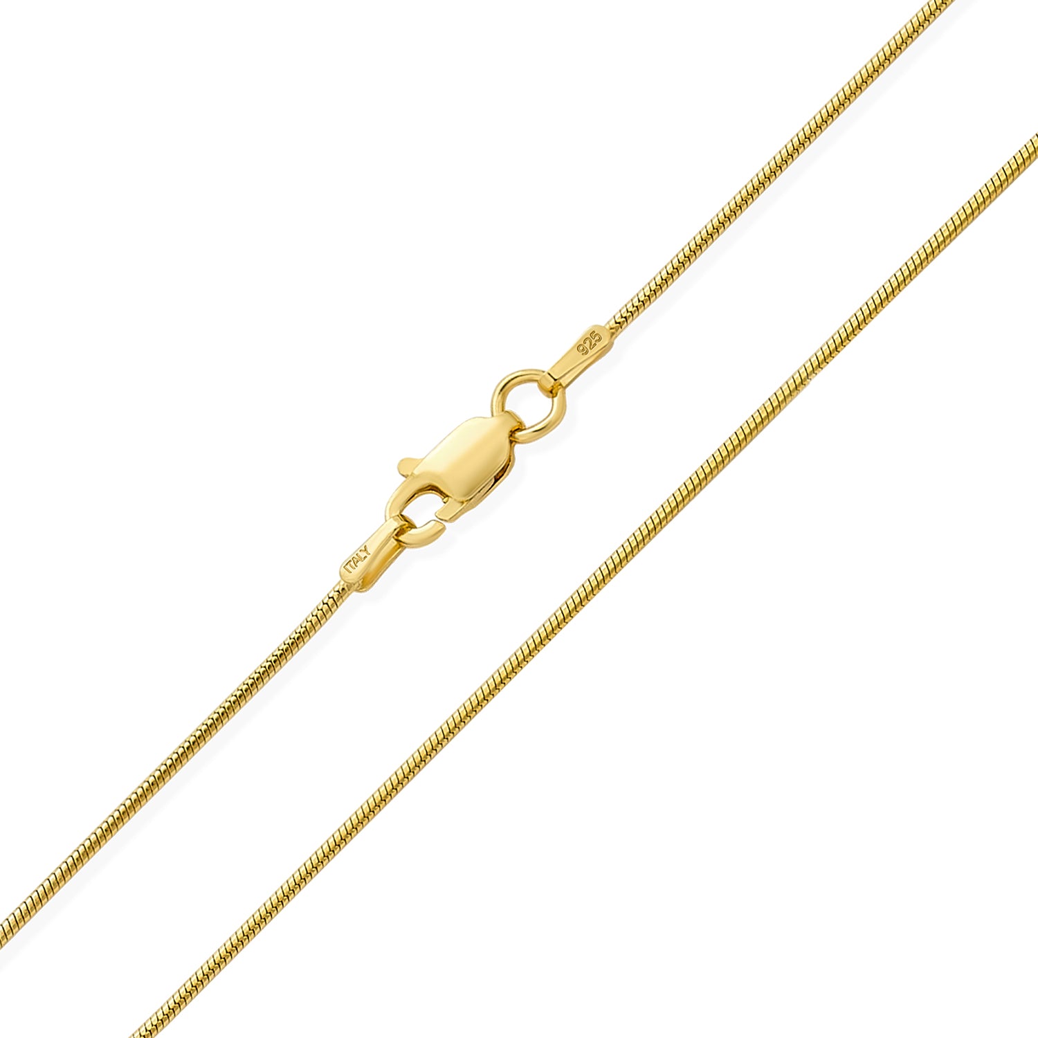 - Be spontaneous with this gold plated snake chain necklace. The options are endless with many different lengths to choose from to add your favorite pendants for a different look every day. The comfortable chain comes in various lengths so you can find the perfect size depending on where you want the pendant to fall. These chains come with a sturdy Spring ring clasp in a high polished finish. Be imaginative with your pendants and double up the chains for a choker look with a smaller pendant to the top strand and a larger pendant to the larger strand. Any way you wear these snake chain necklaces you will enjoy how they look and their comfortable feel.