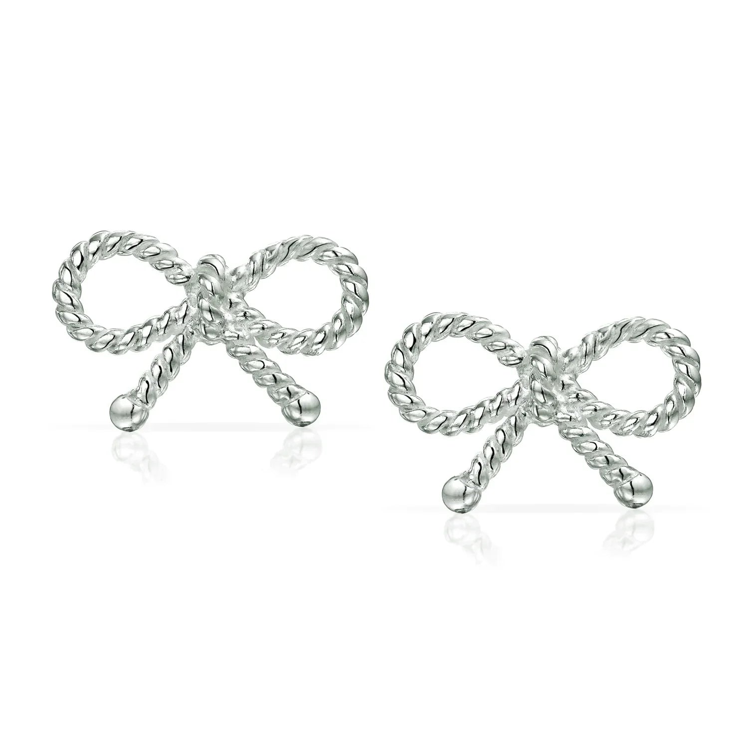 - Bow jewelry is fresh and feminine. Our sterling silver 925 twisted ribbon bow stud earrings will add a touch of elegance to even your most casual outfits. Small sterling silver stud earrings are an easy way to stay stylish and these small rose gold plated sterling silver ribbon bow earrings are a cute way to update any jewelry box with affordable silver earrings for women.