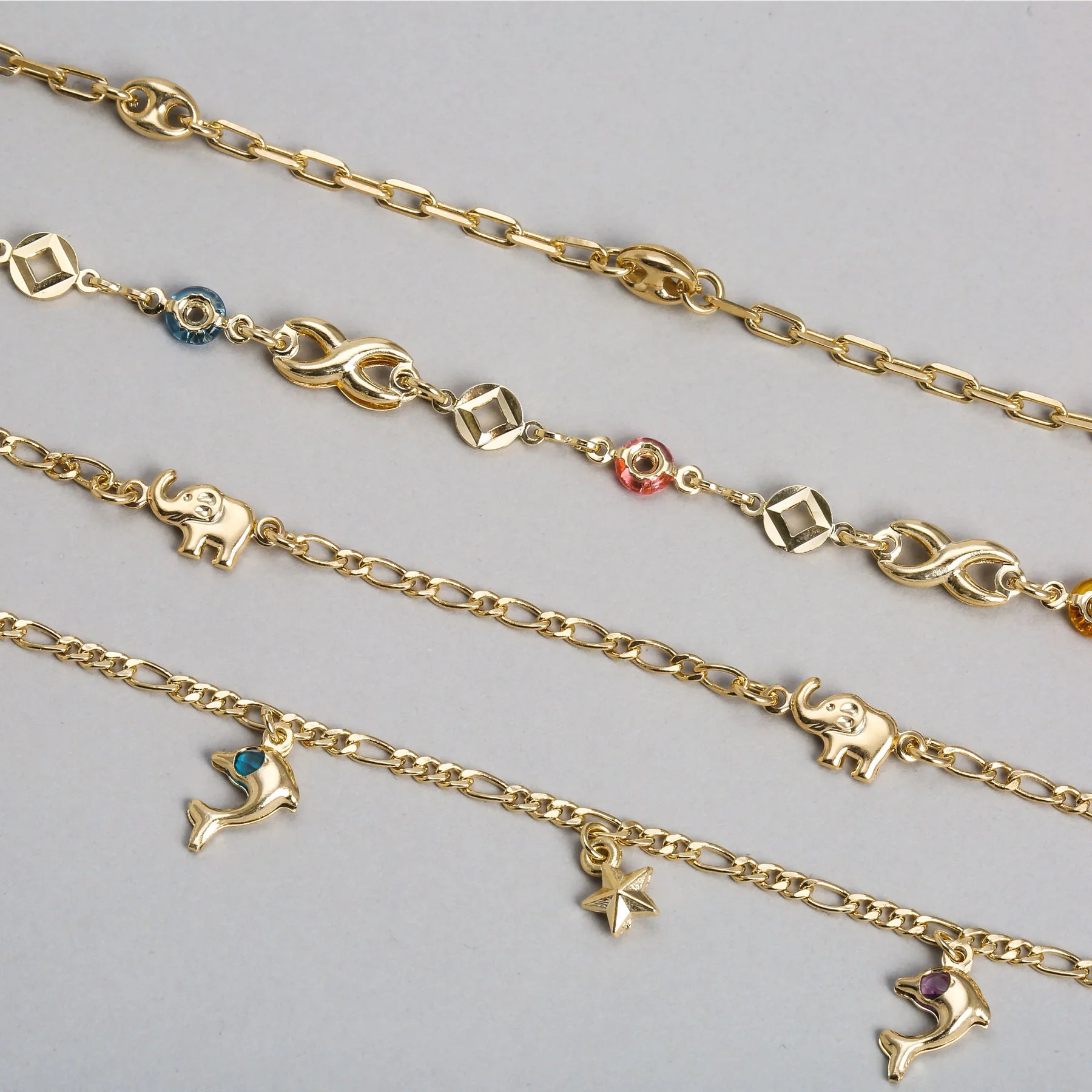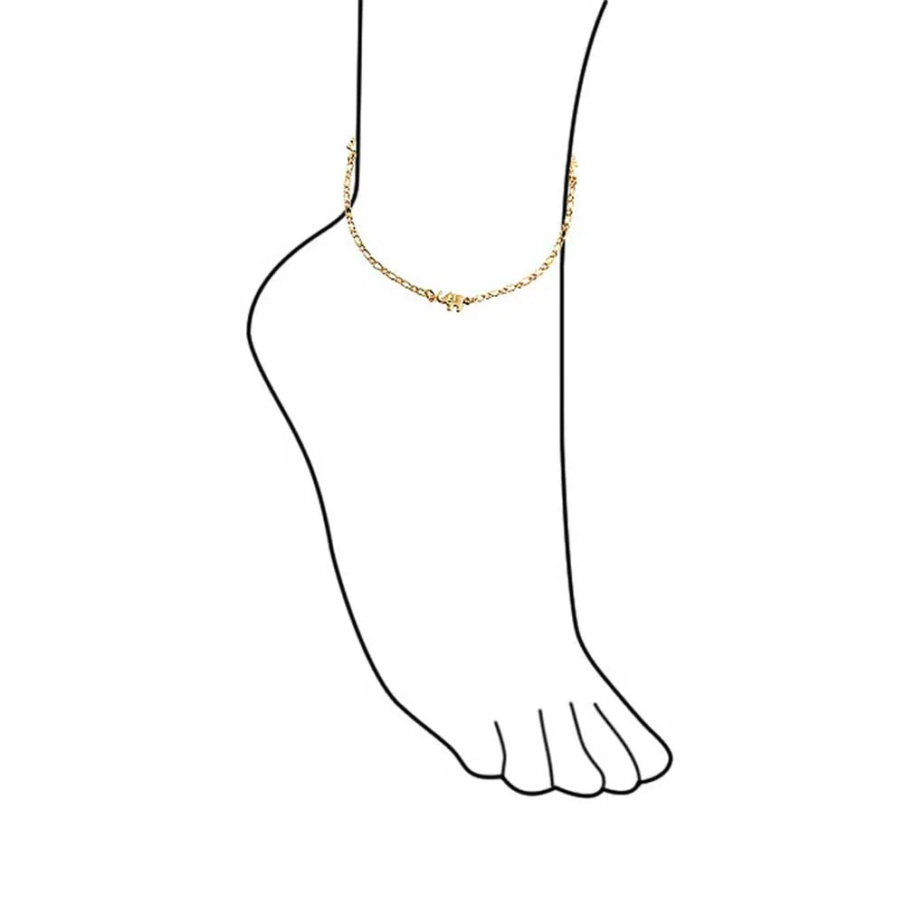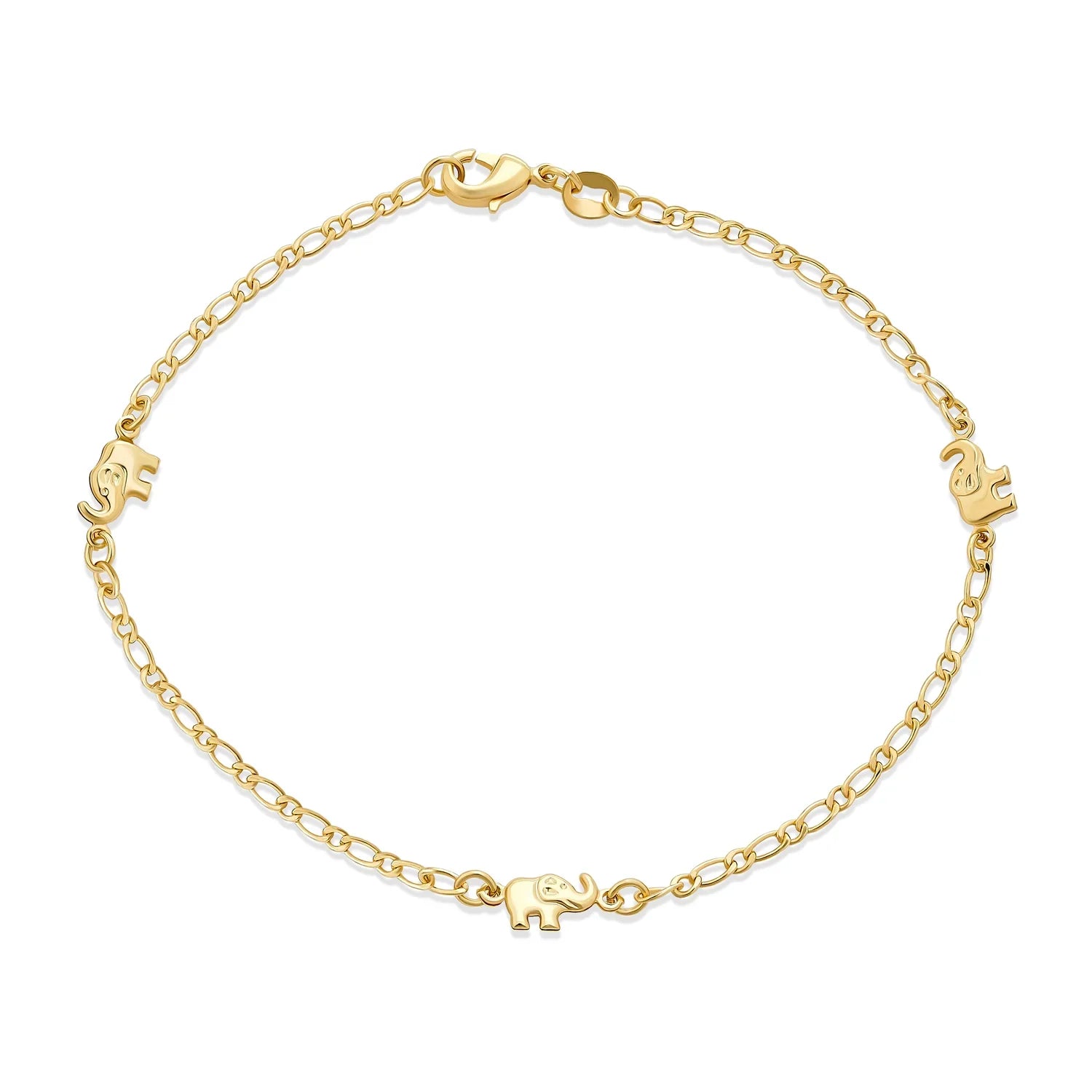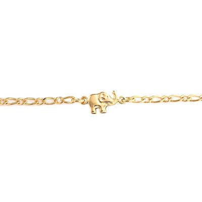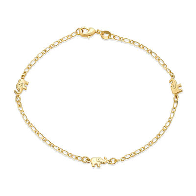 - Three lucky elephants symbolize good fortune on this adorable 18k Gold Plated Brass anklet. The 9.5-inch Figaro rolo chain features delicate elephant silhouettes. Securely fastened with a lobster claw clasp, it's perfect for elephant jewelry lovers. Elephants never forget, so add this charming anklet to your collection. Show your support for the Republican party with this fashionable statement piece.