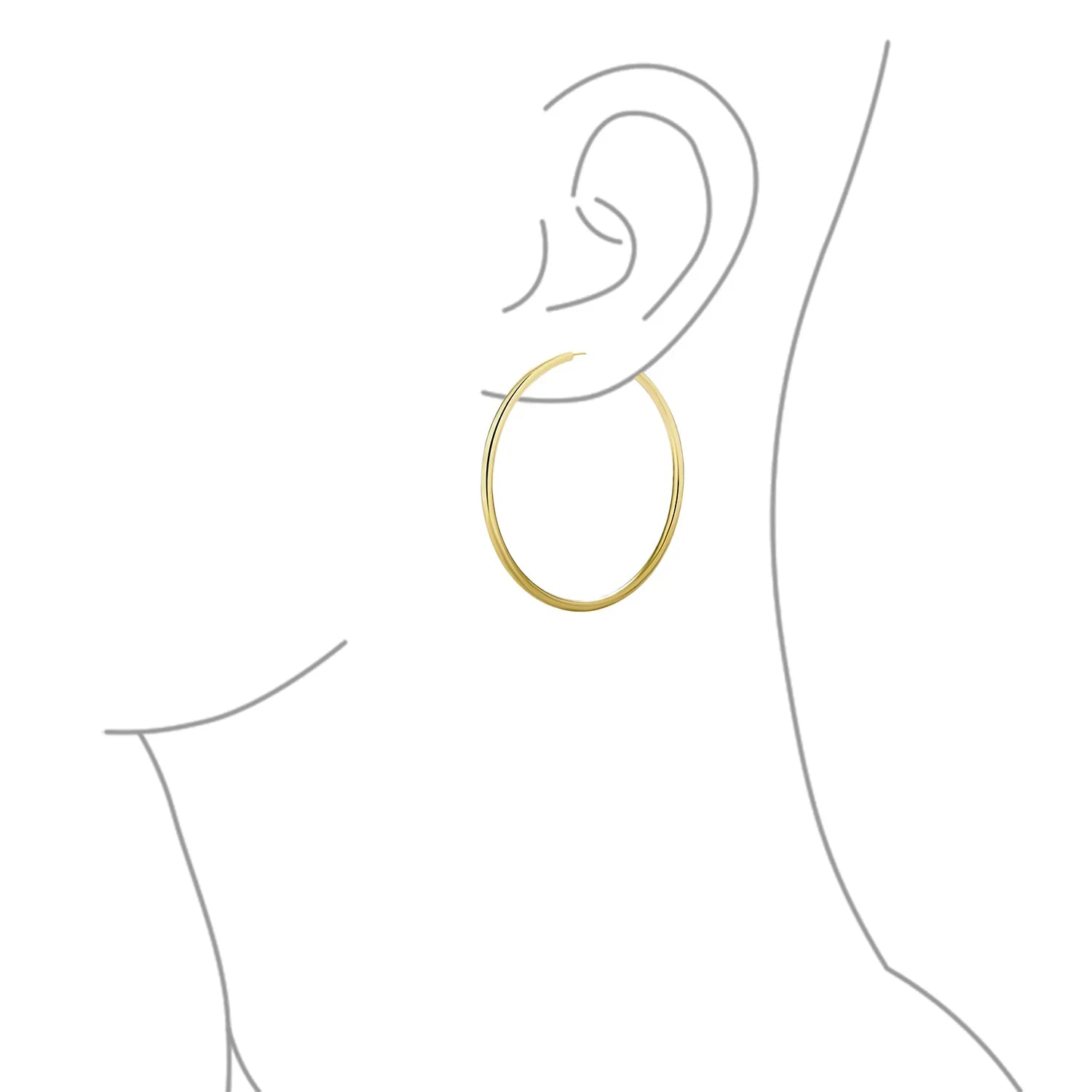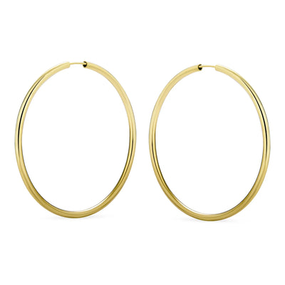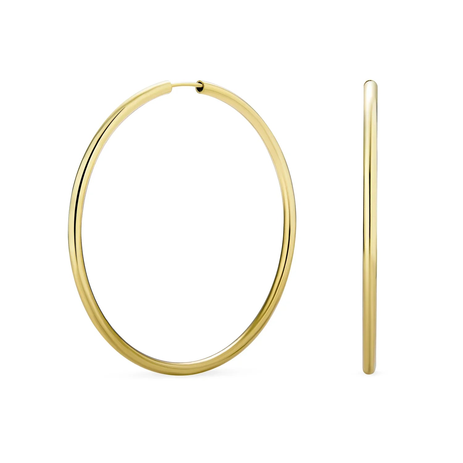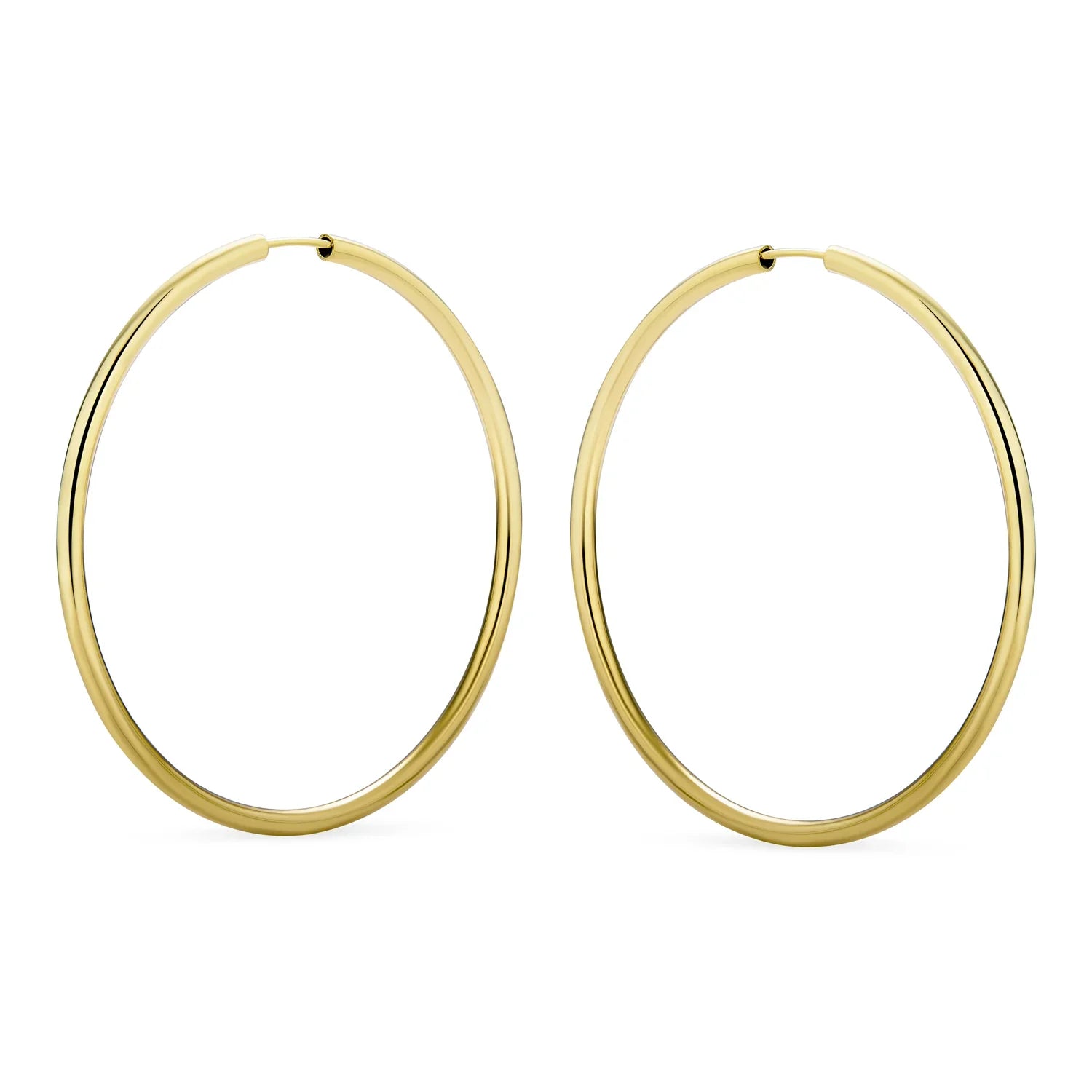 • Our 18K Gold Plated Brass endless hoops have the wow factor at two inches in diameter. These trendy, modern tube earrings are always in style and a must have pair of fashion jewelry earrings for every jewelry box.