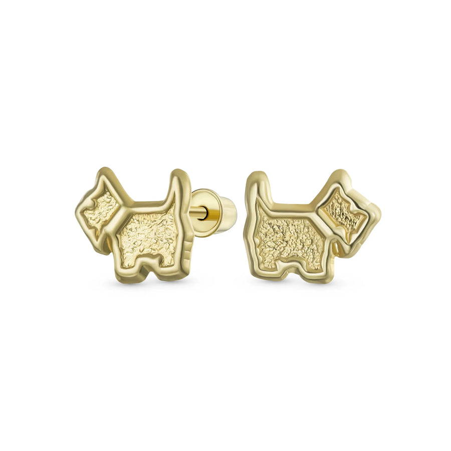 - Show your love for dogs with these charming gold terrier stud earrings. Perfect accessory to elevate any outfit. Paw-fect glamour!