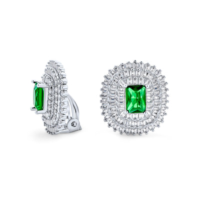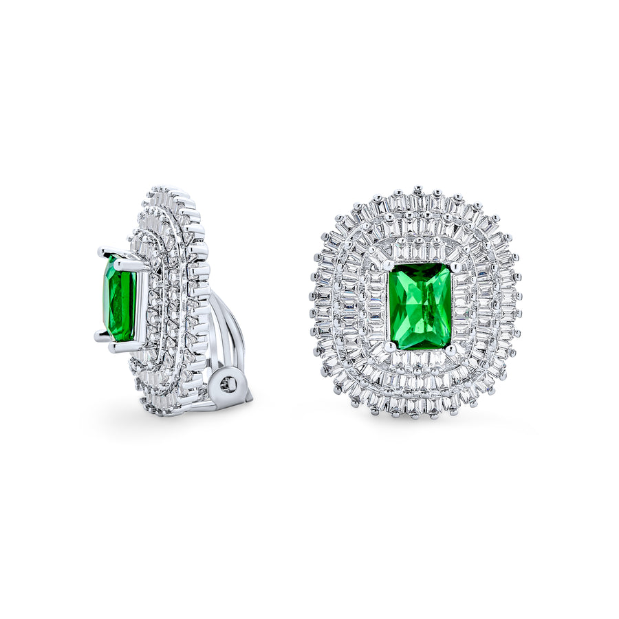 - Vintage Style: Elevate your outfit with these chic earrings, featuring a radiant shimmer and a lustrous rectangle CZ surrounded by a large regal graduated stepped halo. The clip-on closure makes them perfect for non-pierced ears on any special day.