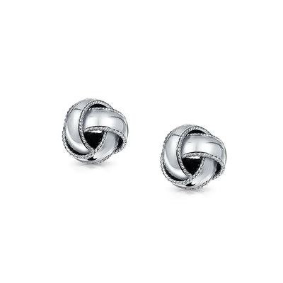- Discover our exquisite woven love knot stud earrings, a chic addition to any woman's jewelry collection. Elevate your style with their timeless, sophisticated design. Crafted with precision, these elegant earrings feature a classic braided love knot motif. Made from high-quality sterling silver, they boast a lustrous finish. Perfect for both business attire and casual outfits. The intricate love knot symbolizes eternal love and commitment. Ideal for special occasions or heartfelt gestures. Invest in these stunning earrings and frame your ears in brilliant style. Make a lasting impression with this timeless piece.