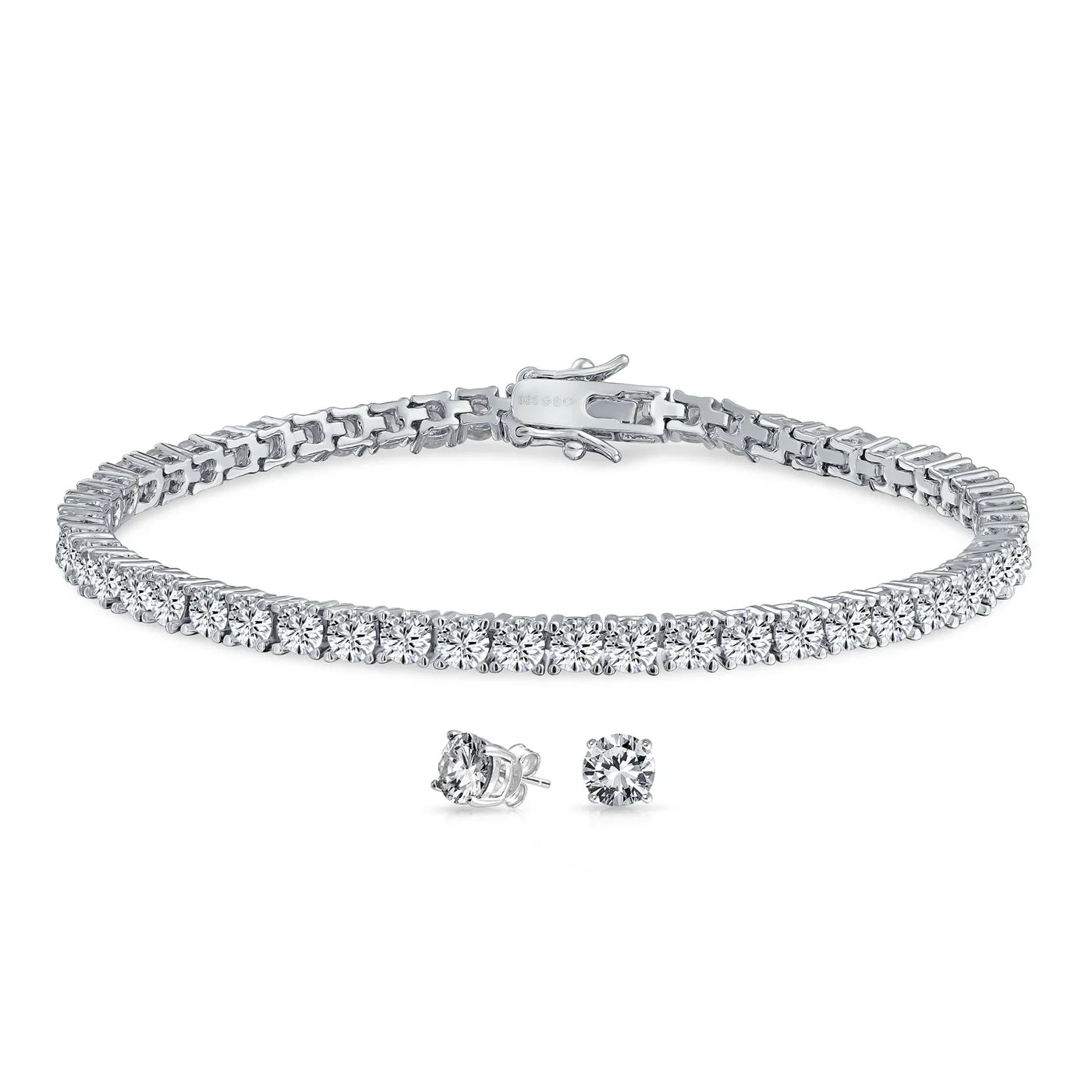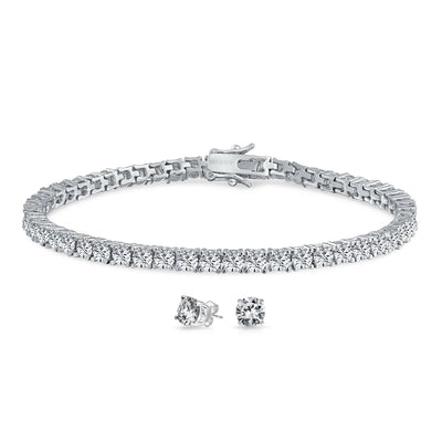 - Tennis bracelets are timeless bridal accessories. This set features sterling silver with cubic zirconia stones, perfect for your special day. The .925 sterling silver bracelet has over 40 round cut CZs in 4 prong settings. The elegant stud earrings are 5mm in diameter and also 4 prong set. Be picture perfect on your wedding day and beyond. Share this stunning bracelet and earring set with someone you love.