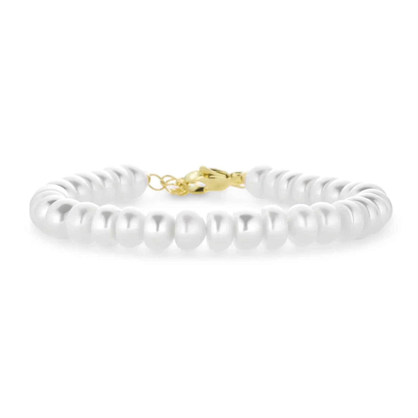 - The 40 freshwater pearls in this 6.5-inch bracelet are elegantly strung together. Perfect for bridal parties, mothers, and daughters. This stunning white pearl bracelet is versatile, with high-luster pearls. A tasteful addition to any formal or casual occasion. Get this amazing June birthstone bracelet now or as the perfect wedding accessory.