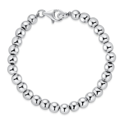 - Discover our versatile, timeless sterling silver bracelet, perfect for rocker or refined styles. Crafted with care, featuring 6mm polished metal balls. Weighing just 6 grams, it offers a comfortable fit with a secure lobster clasp. Effortlessly complements cute tees and elegant dresses. Treat yourself or surprise a loved one with this must-have accessory. Ideal for birthdays or holiday gifts, adding sparkle and shine to any outfit.