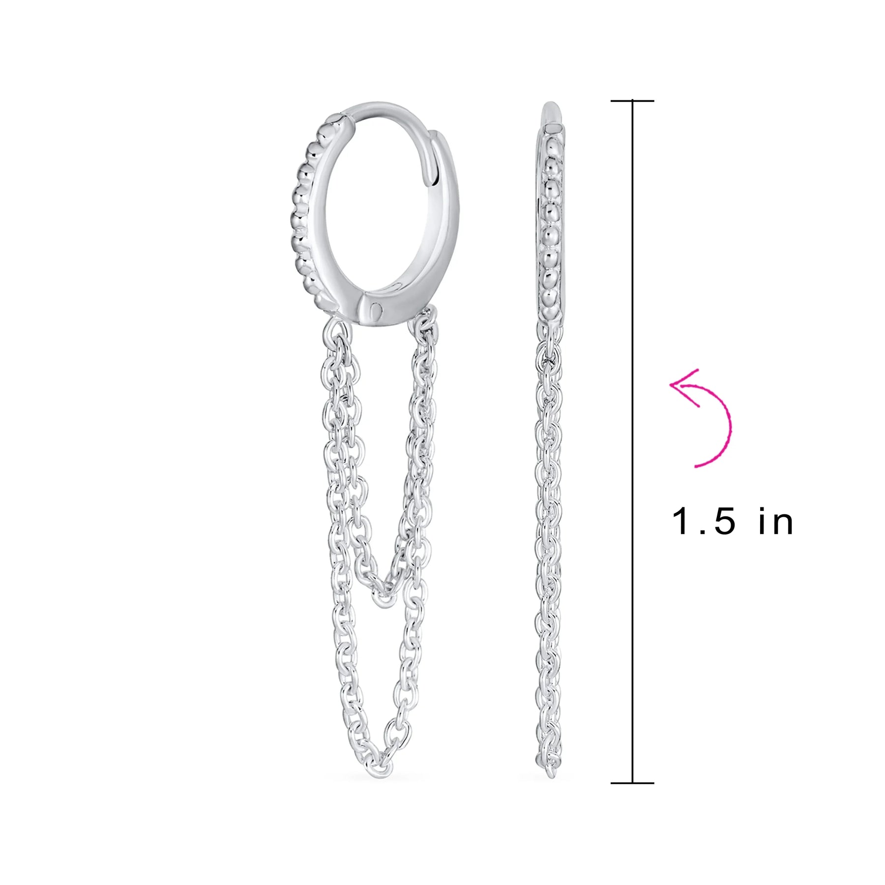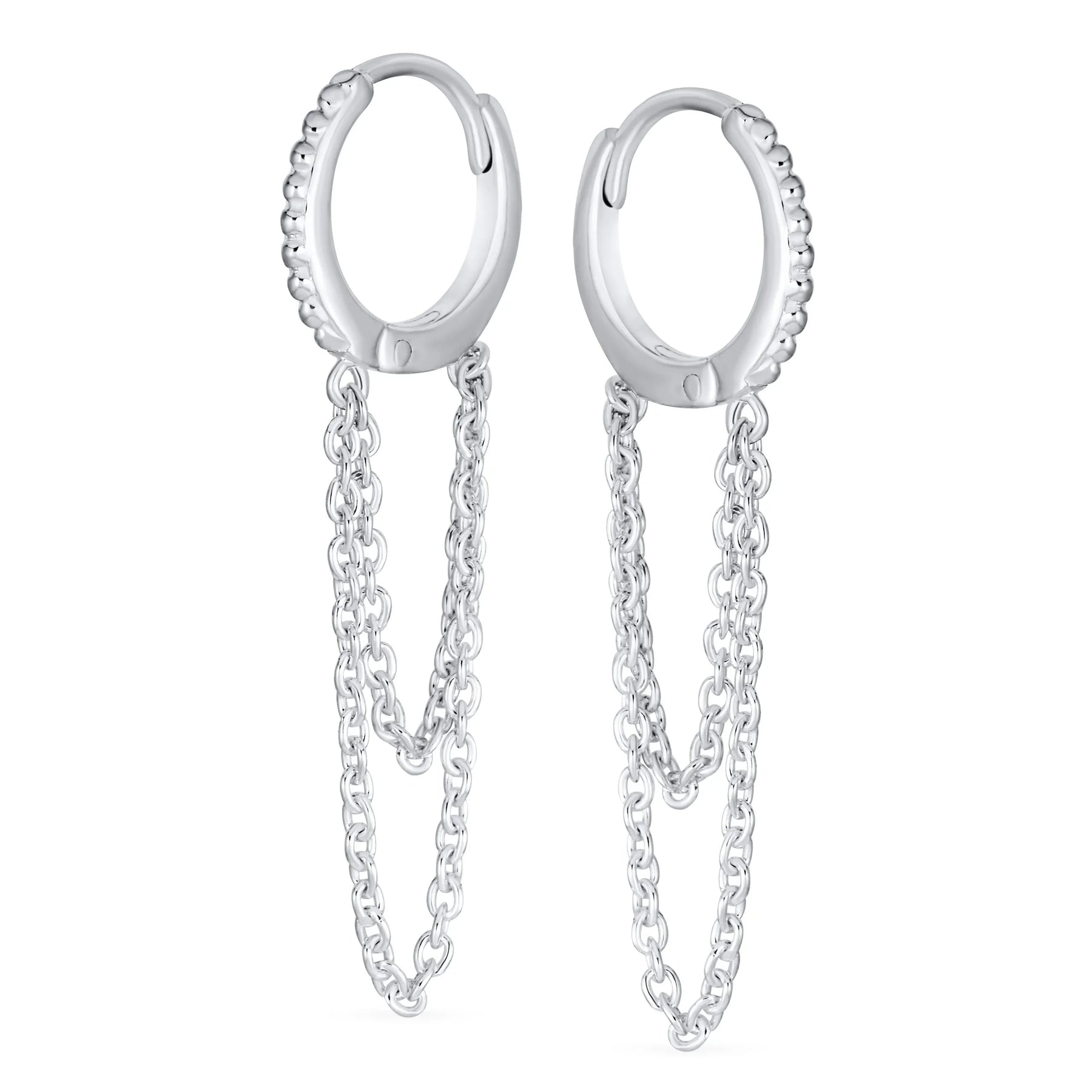 - Our sterling silver link chain earrings are a modern, eye-catching choice. Stir attention with our silver chain and hoop earrings. Fun to wear, they add a modern accent to any outfit. These chain earrings will turn heads.