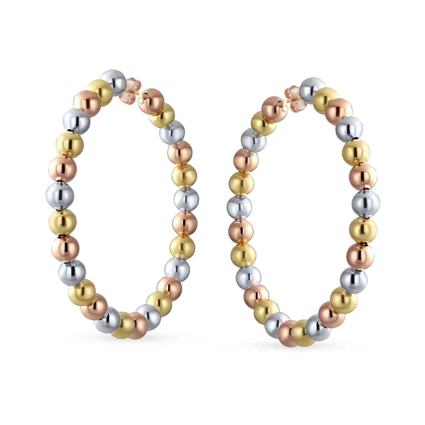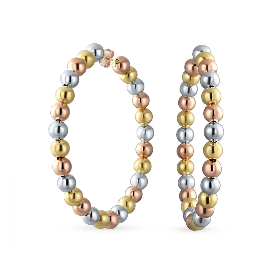 - Enhance your style with our 18K Gold Plated Brass 3-tone hoops. Perfect for any outfit and occasion. Ideal gift for women. Mix and match with your favorite bAngles. Trendy, elegant, and versatile for casual or dressy looks. Wear together for a colorful statement or individually for a stunning simplicity.