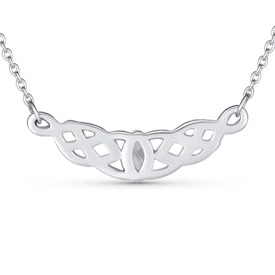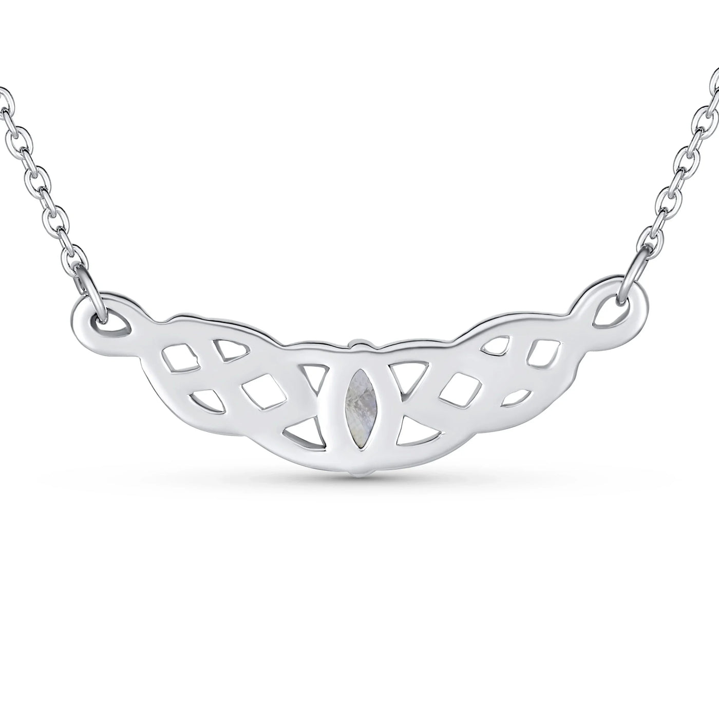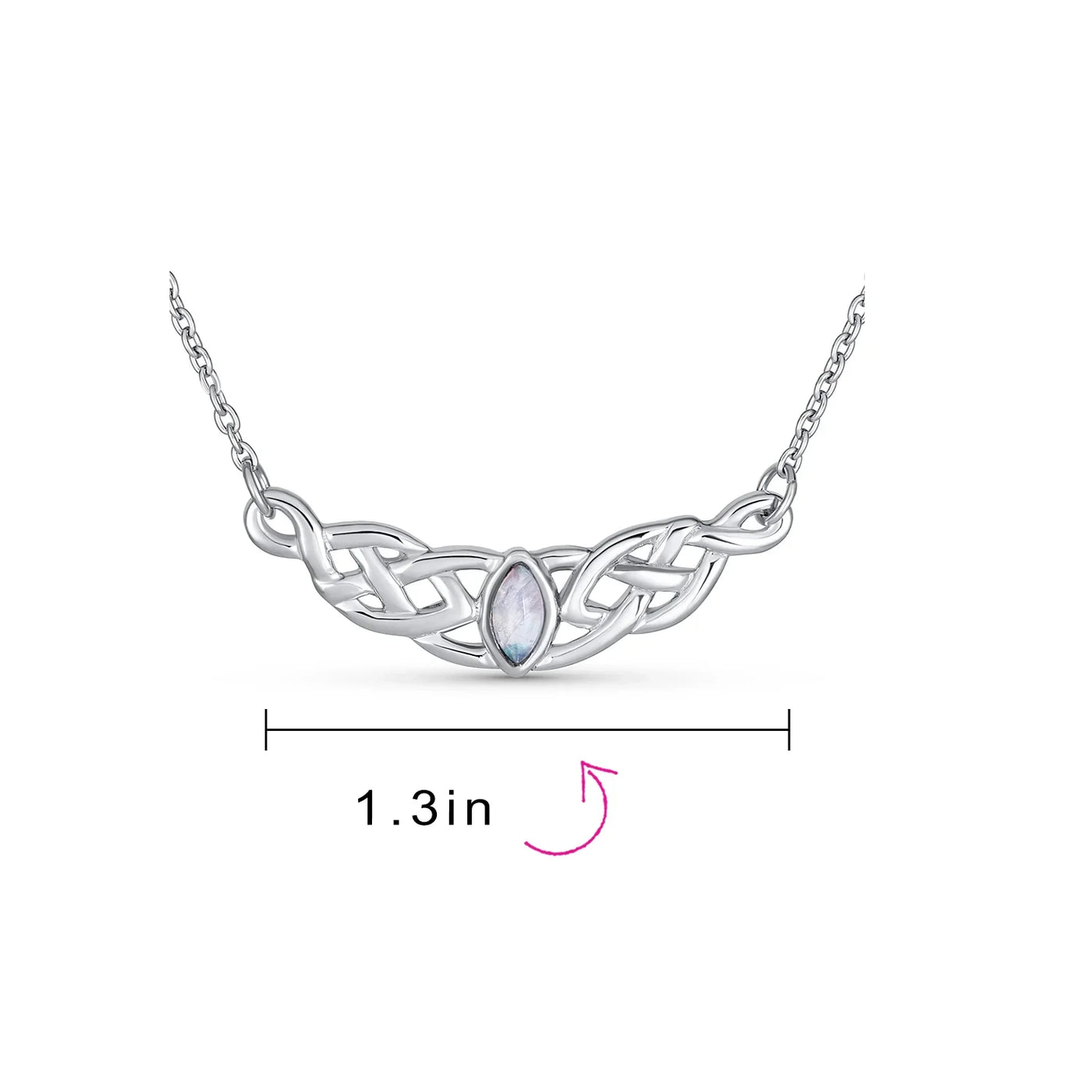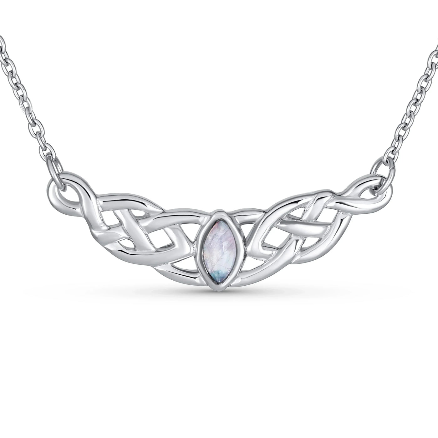 - Show off your Irish pride with this .925 Sterling Silver Moonstone pendant necklace. This rainbow Moonstone necklace is rich in Irish tradition. The intricate Celtic knot design symbolizes eternity and interconnectedness. Express eternal love with this sensational Celtic jewelry. The delicate design complements almost any outfit. The marquise-shaped Moonstone adds a perfect hint of sparkle. Made entirely in .925 Sterling Silver, it features a rolo chain and lobster claw clasp. The two-inch extender offers great versatility. Buy this meaningful Celtic jewelry for a loved one today.