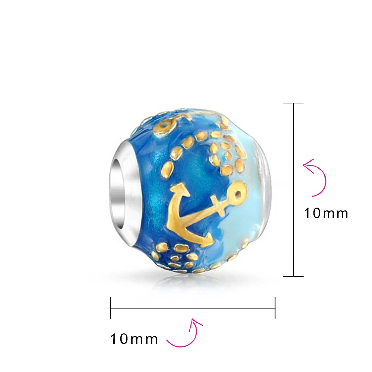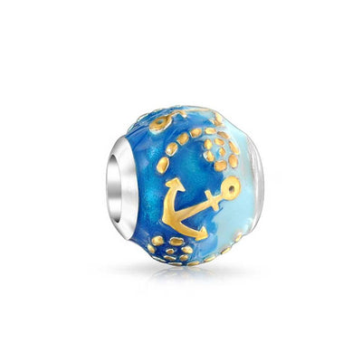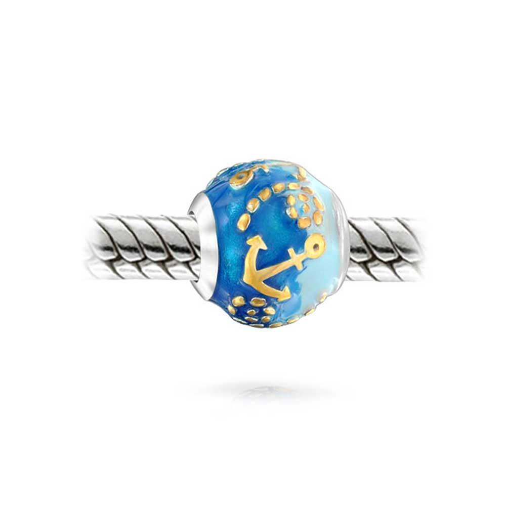 - Discover your new favorite nautical bead charm. This unique ocean jewelry features a stunning three-tone design with mixed materials. Two shades of blue enamel depict the sea and sky on Sterling Silver. Gold-plated textured anchors and chains complete this exquisite anchor jewelry. Perfect for any charm bracelet, grab yours today!