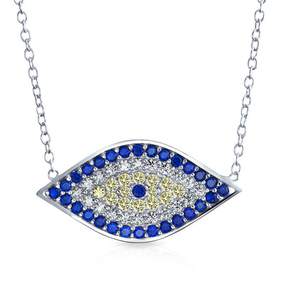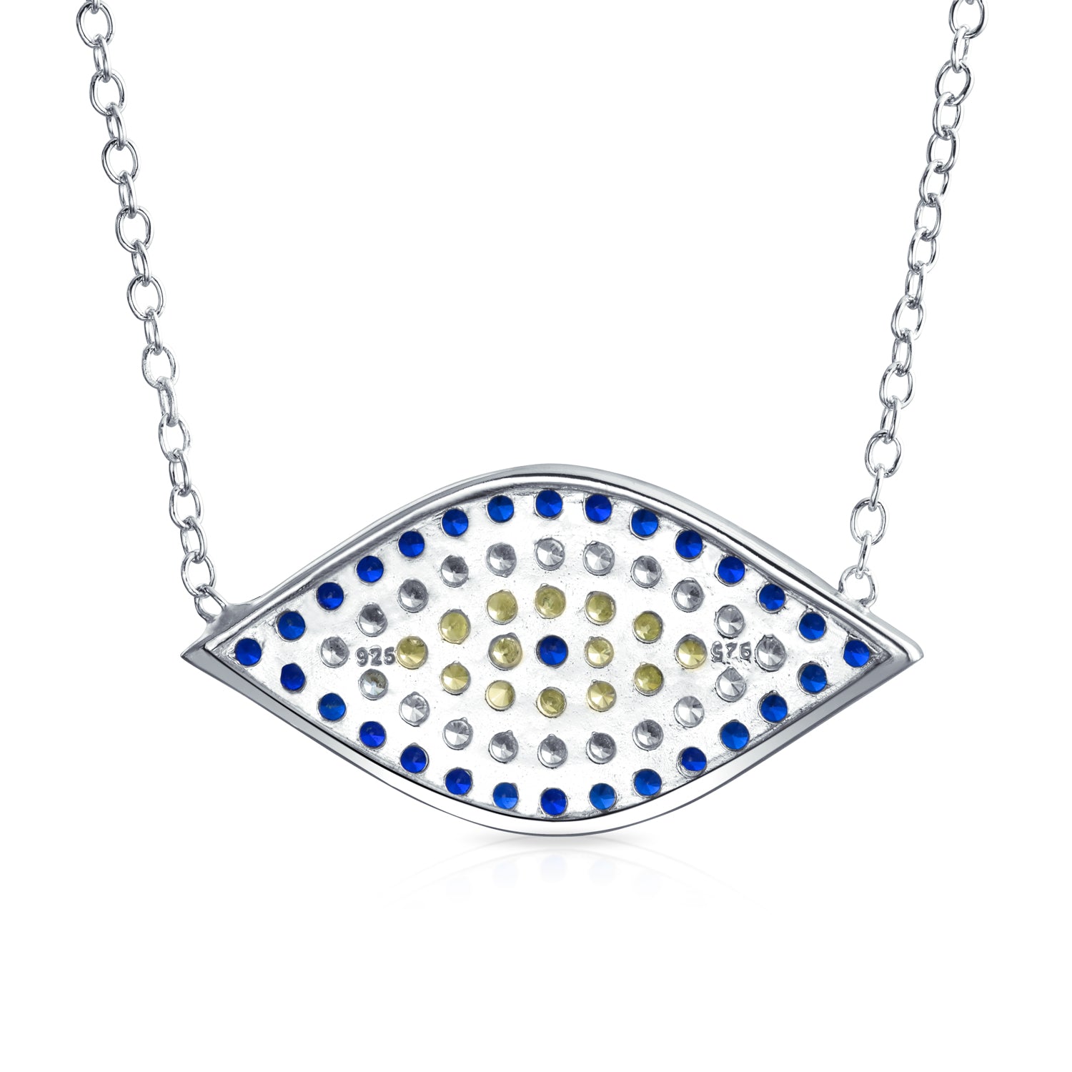 - Our .925 Silver Evil Eye Necklace sparkles with Simulated Sapphire and Cubic Zirconia in a .925 Sterling Silver pendant. Protective evil eye jewelry. The blue eye is crafted from round CZ stones. Perfect gift for luck and protection.