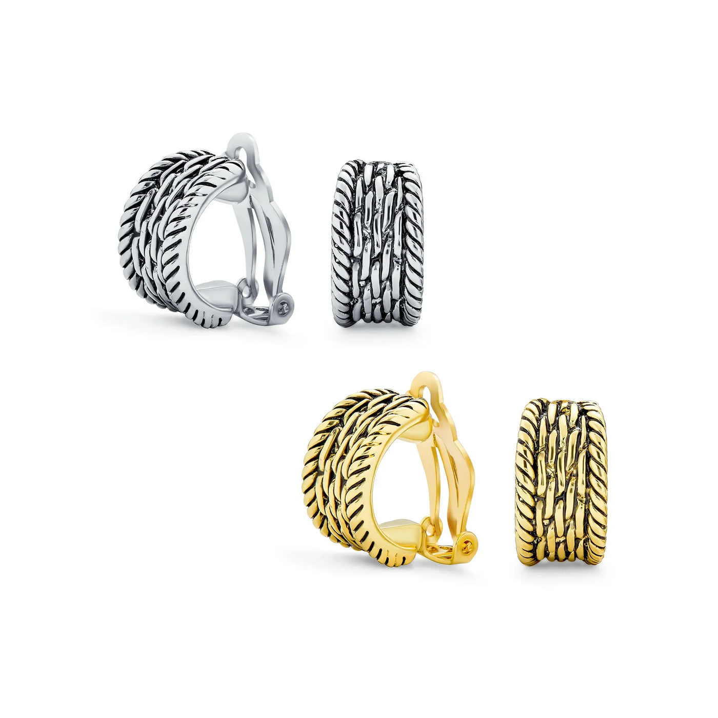 - Enhance your style with Gold Plated twisted cable chain clip-on earrings. These hoop earrings for women offer timeless elegance and endless style. Pair them with jeans or a night-out outfit for chic sparkle. Weighing 9.7 grams and measuring .70 inches long by .35 inches wide, they're perfect for everyday or special occasions. Ideal for non-pierced ears, these earrings make a great gift for any woman.