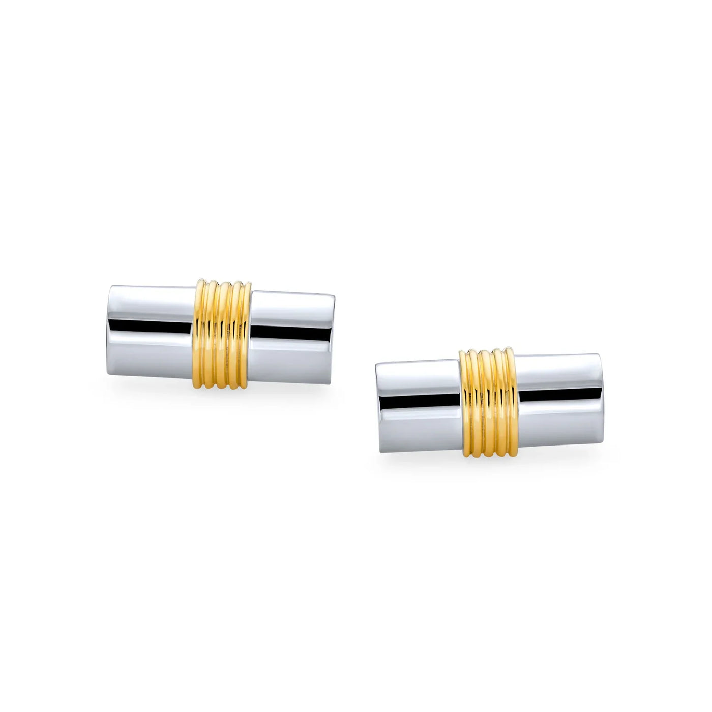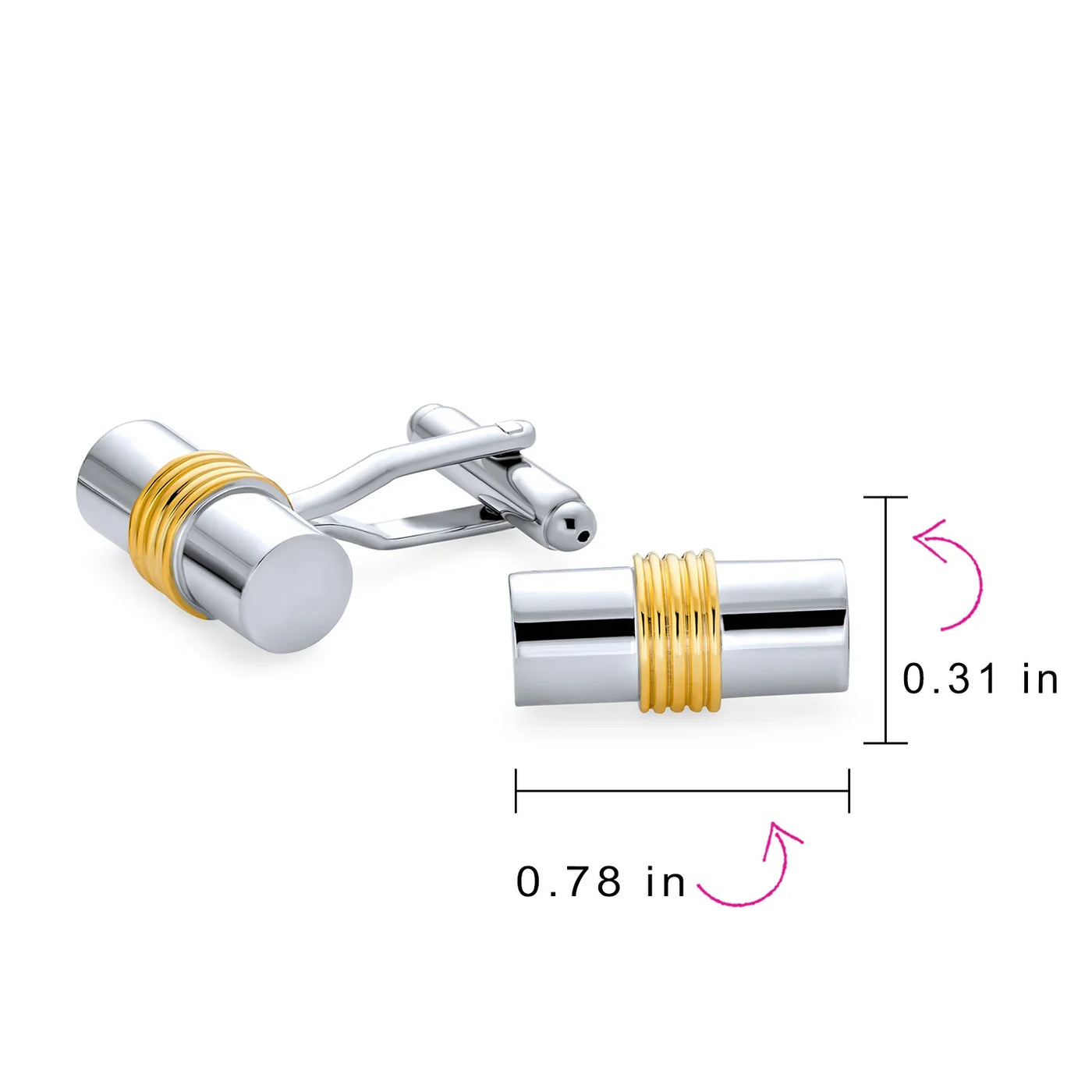 - Elegant and stylish, these stainless steel cufflinks feature a polished cylinder design with gold-plated grooves. The bullet toggle back ensures secure wear. Perfect gift for father, brother, uncle, or grandfather on birthdays or graduation s. Enhance any suit with these modern gold-plated and silver cufflinks.