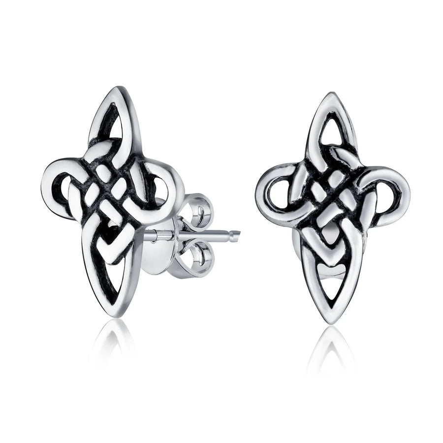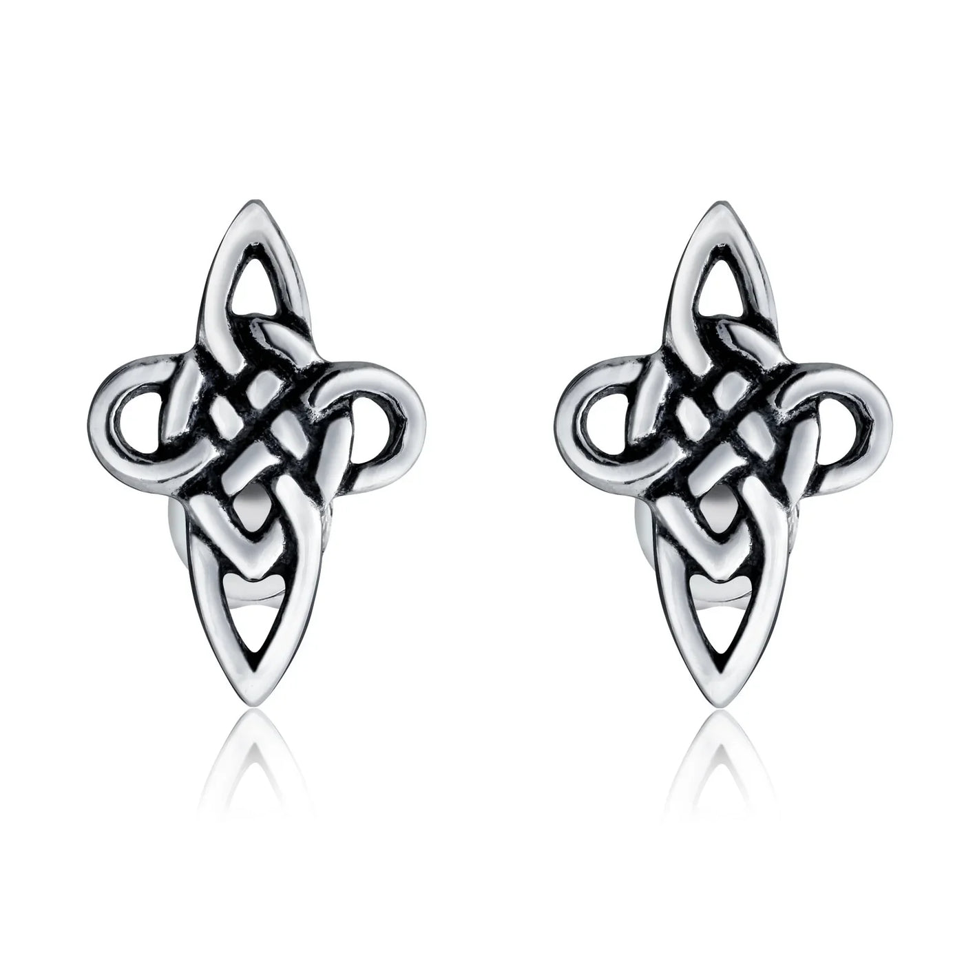 Unisex Celtic Cross Stud Earrings, Viking Irish Love Knot, Oxidized Silver - Bling Jewelry