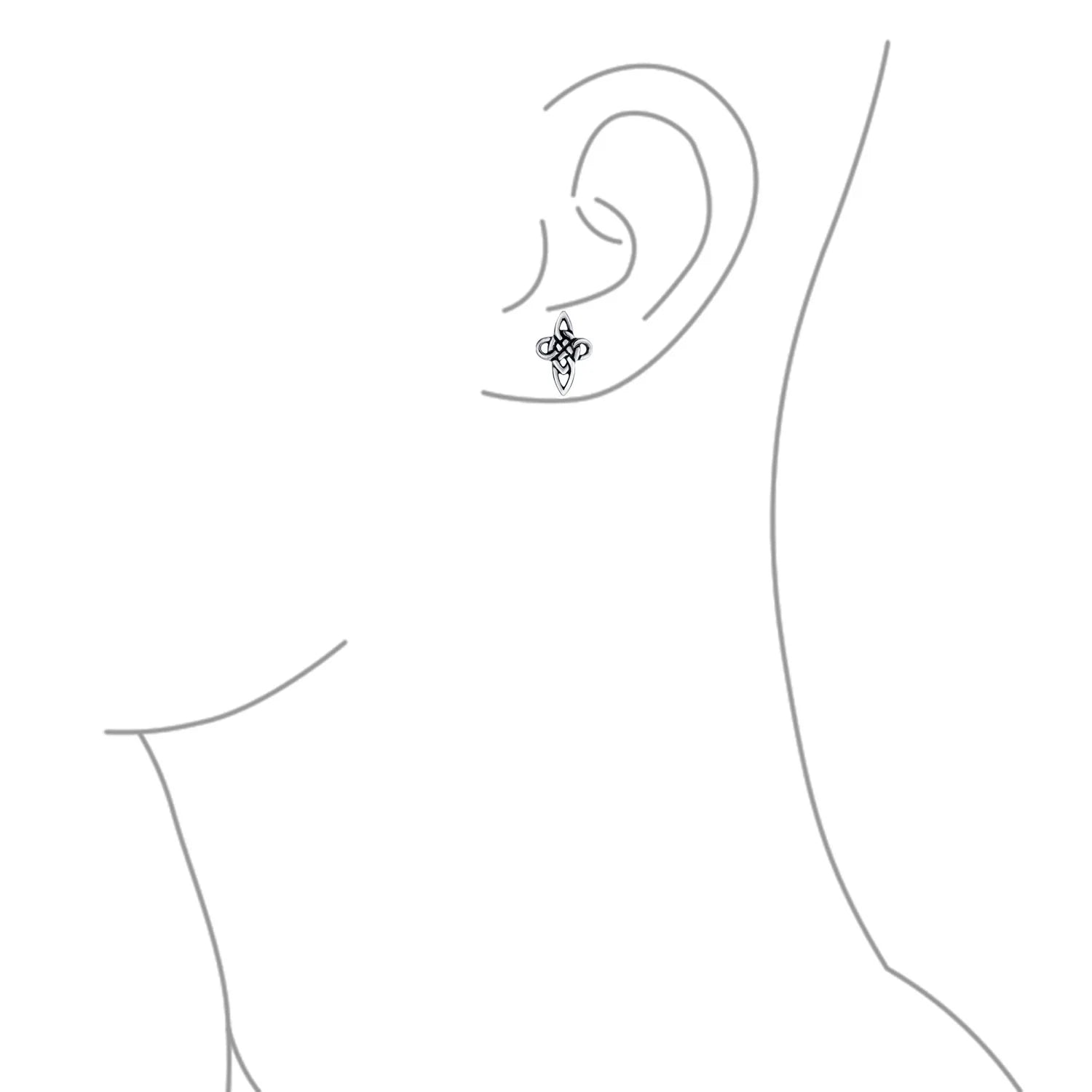 • The oxidized finish elegantly accentuates the intricate Trinity knot design on these cross stud earrings, showcasing the finely detailed and highly recognizable Celtic woven knot pattern cherished by many.