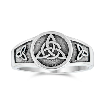 Unisex Silver Ring with Viking Celtic Infinity Knot Triquetra Signet Design