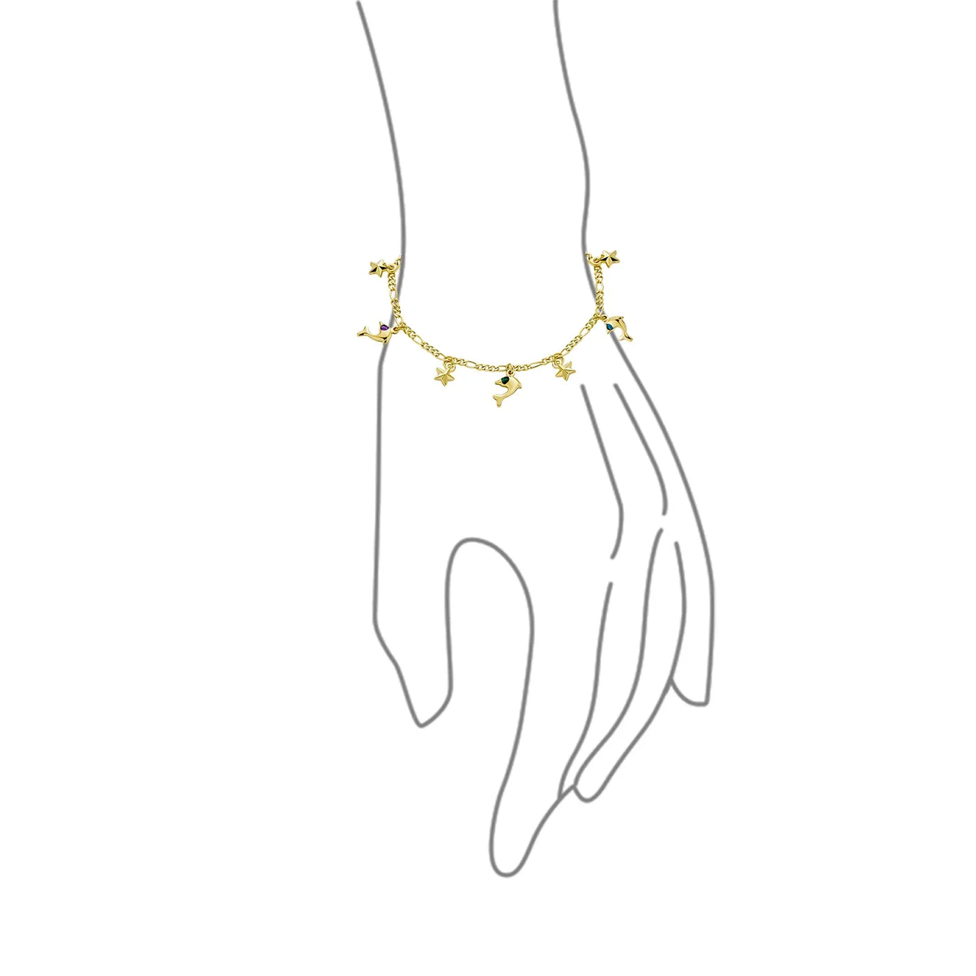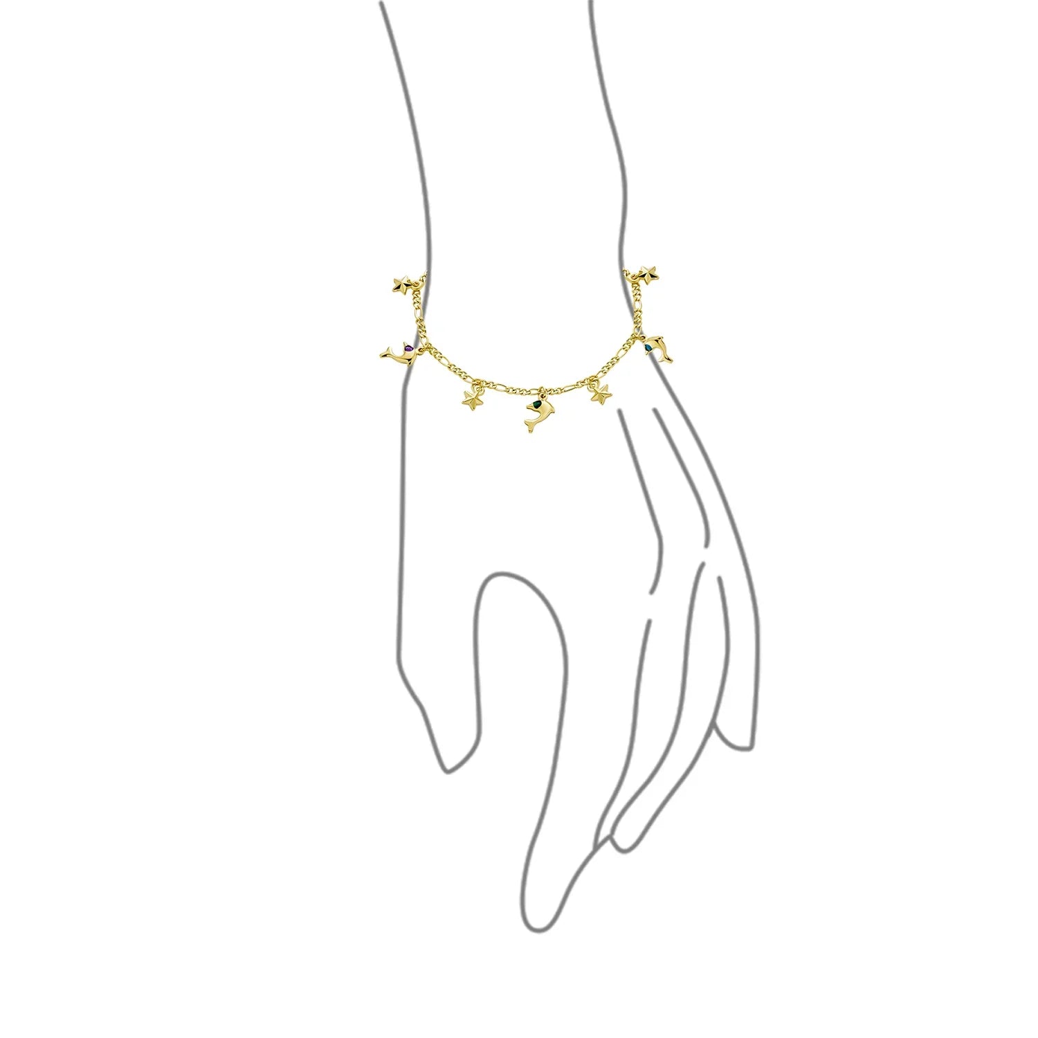 - This charming nautical bracelet showcases playful dolphin charms, appearing to swim in tandem, adding a delightful touch to your style.